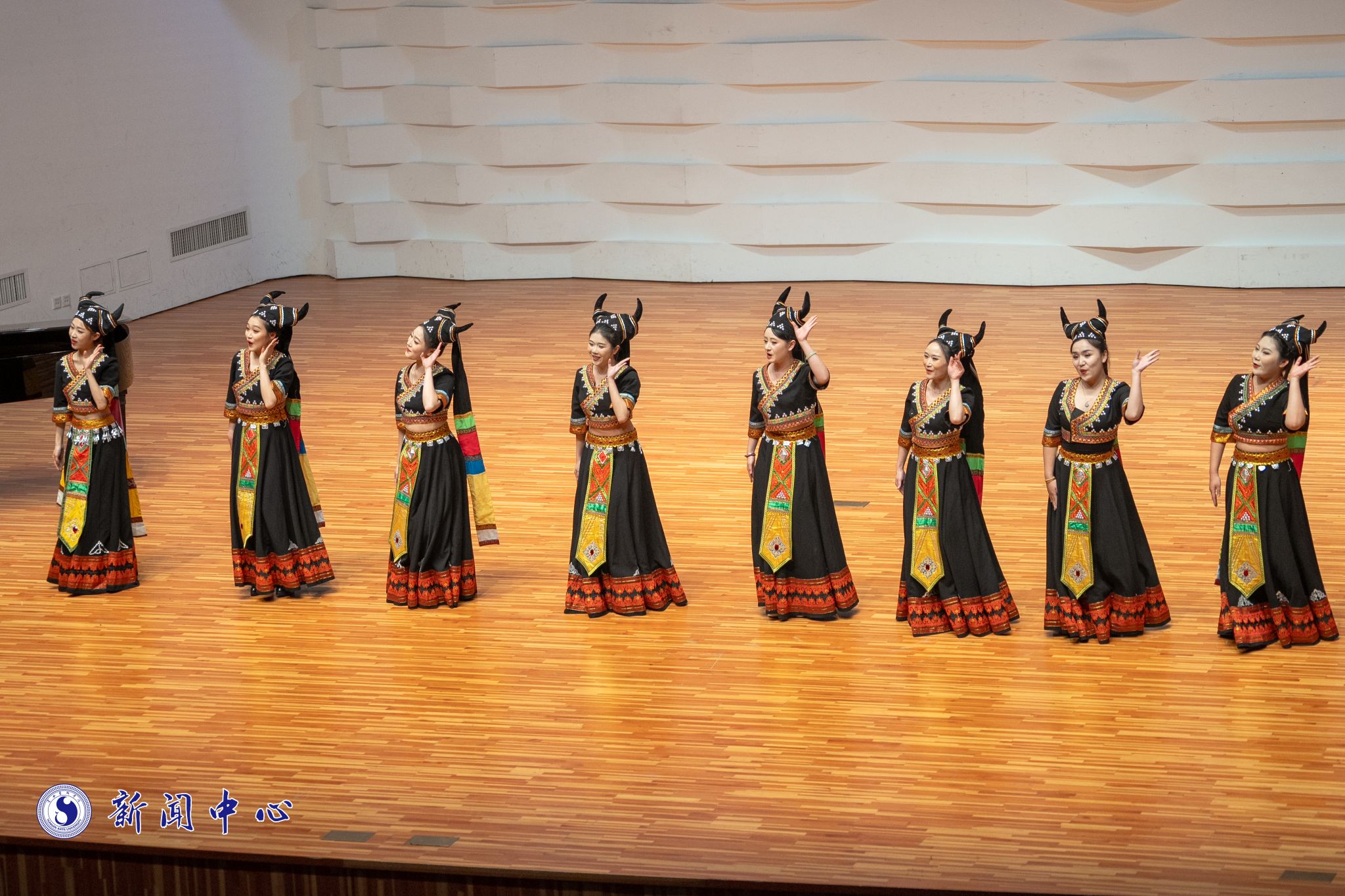 音乐会在悠扬、空灵的《纳西古歌》中开场。《阿尺木刮》载歌载舞,歌声高亢激昂,氛围热烈欢快,生动展现了纳西族人民热情好客的民族风情。