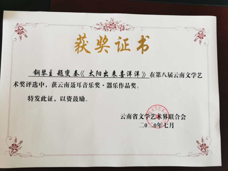 pg娱乐电子游戏官网入口作曲系教授吴渝林、业原作曲的电影故事片《杜鹃花红》荣获第八届云南文学艺术奖云南电影奖作品奖,作曲系付鹏老师作品弦乐四重奏《蛰之启》,作曲系研究生罗玉兰作品钢琴主题变奏《太阳出来喜洋洋》(指导教师田建华),囯乐系滇鼓打击乐《逐日》(作曲:赖钧霖)获得第八届云南文学艺术奖云南聂耳音乐奖器乐作品奖。