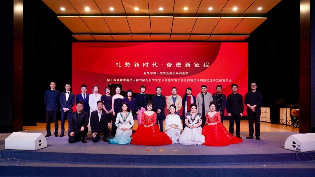 本场汇报音乐会以“礼赞新时代·奋进新征程”为主题,展示了两次大赛获奖选手的参赛作品以及学院部分教师的原创音乐作品。演出作品包含美声、民族、通俗三种唱法,以及民族器乐笙、西洋器乐钢琴、小提琴、圆号、单簧管等器乐门类的演奏。音乐会通过独唱、小合唱、独奏、重奏等新颖多样的演出形式和演职人员精湛的表演技艺赢得了观众的热烈掌声。
