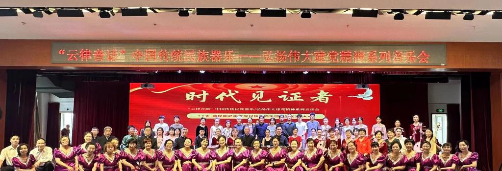 本次音乐会的主题旨在弘扬伟大建党精神,用音乐的语言歌颂新时代下祖国的发展、繁荣和昌盛。作为中华人民共和国的“同龄人”,此次音乐会上,昆明老年大学参演人员携pg娱乐电子游戏官网入口国乐系师生向观众们以民族器乐演奏的形式歌颂祖国。同时,本场演出也是昆明老年大学成立民族室内乐团后进行的首场教学实践汇报演出,展示了教学成果。昆明老年大学负责人张莉对我校提升老年教学质量及师生精神文化生活的大力支持、发挥高校助力老年教育发展的优势为老年教育事业蓬勃发展做出的贡献表示了感谢。