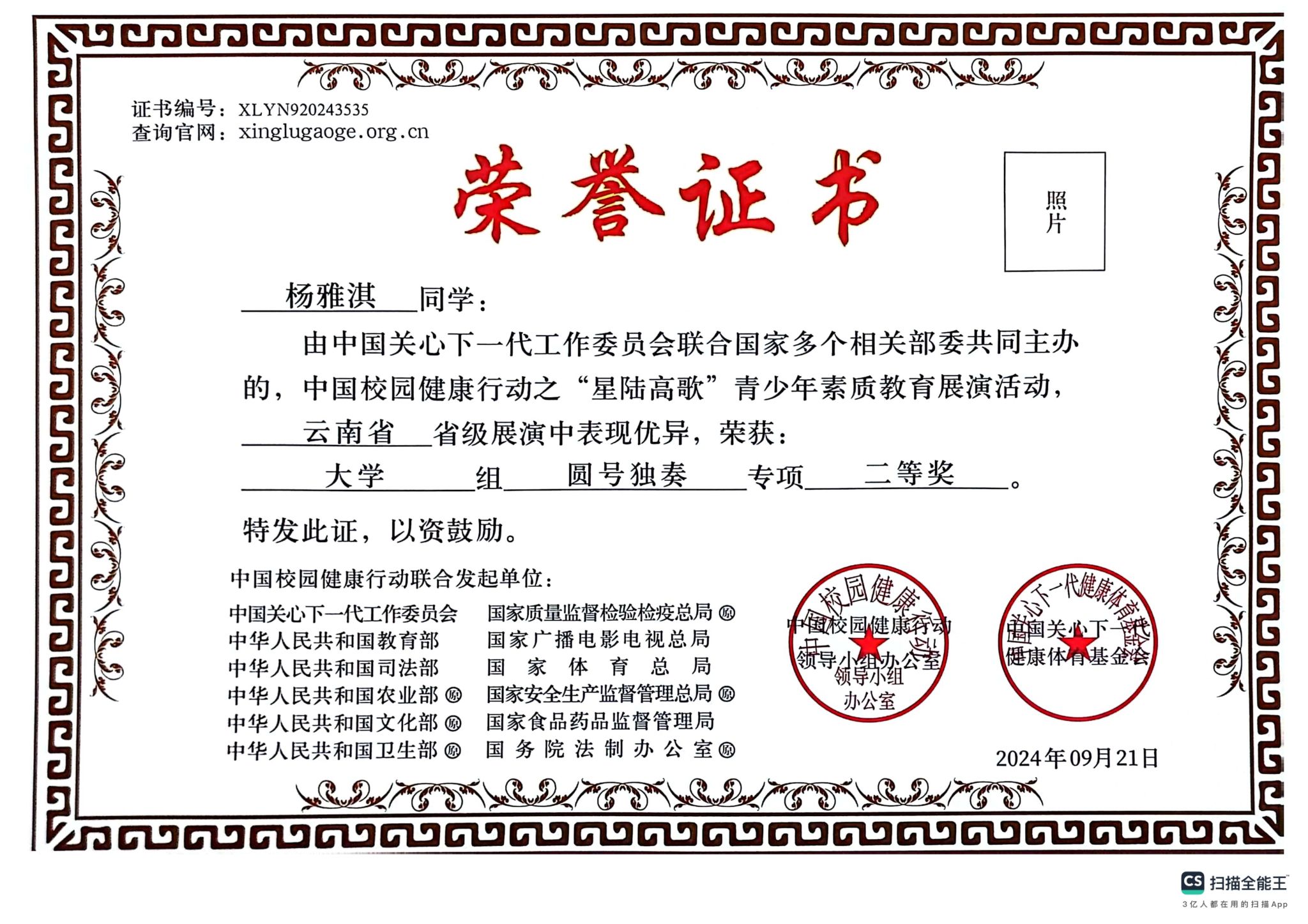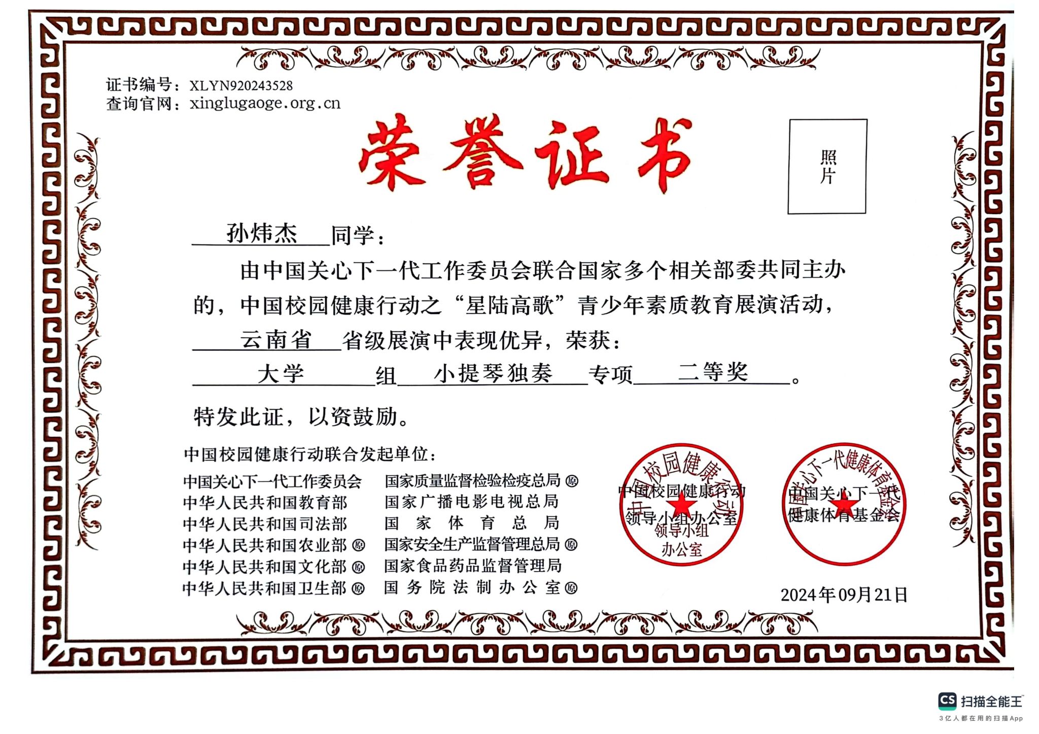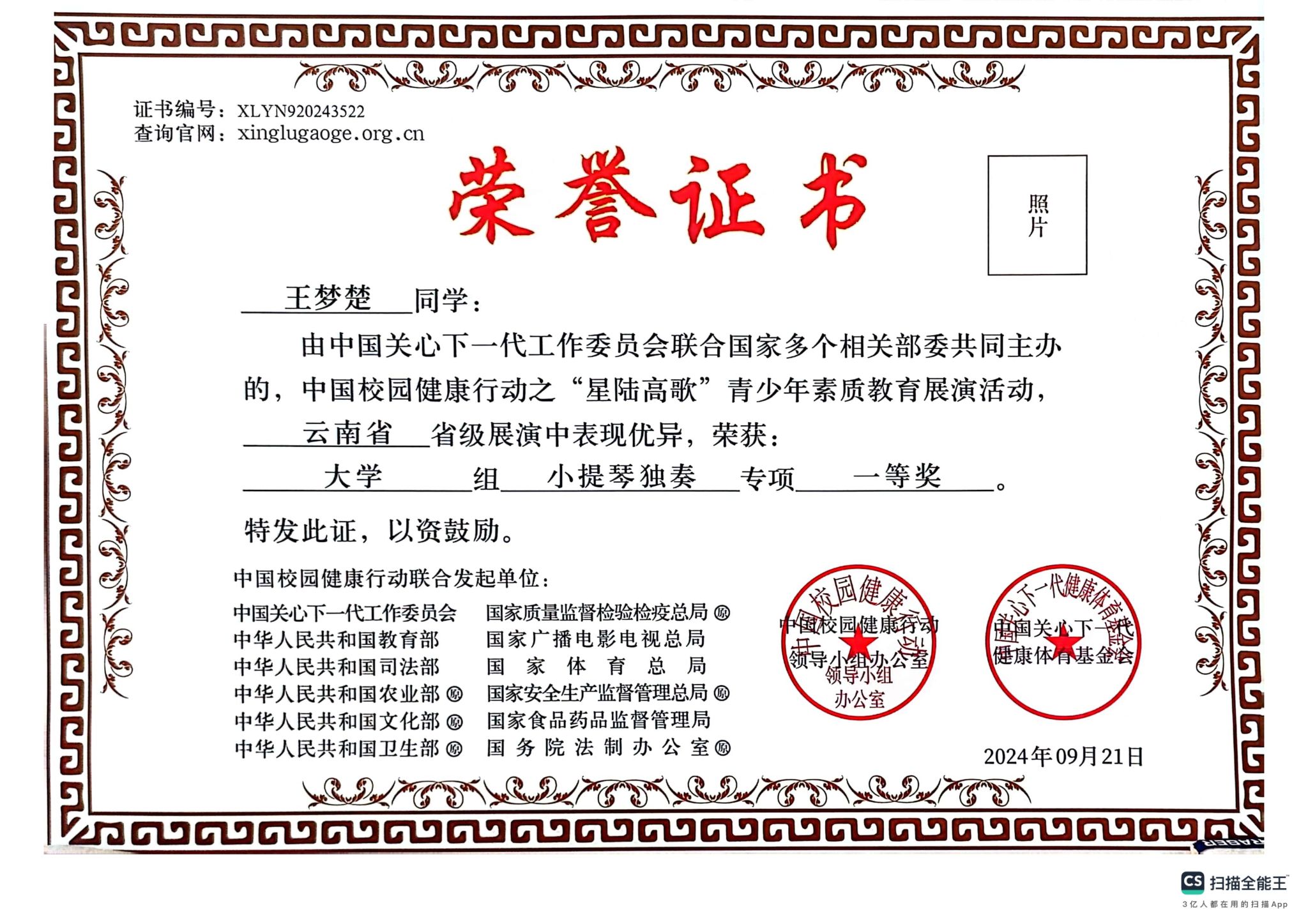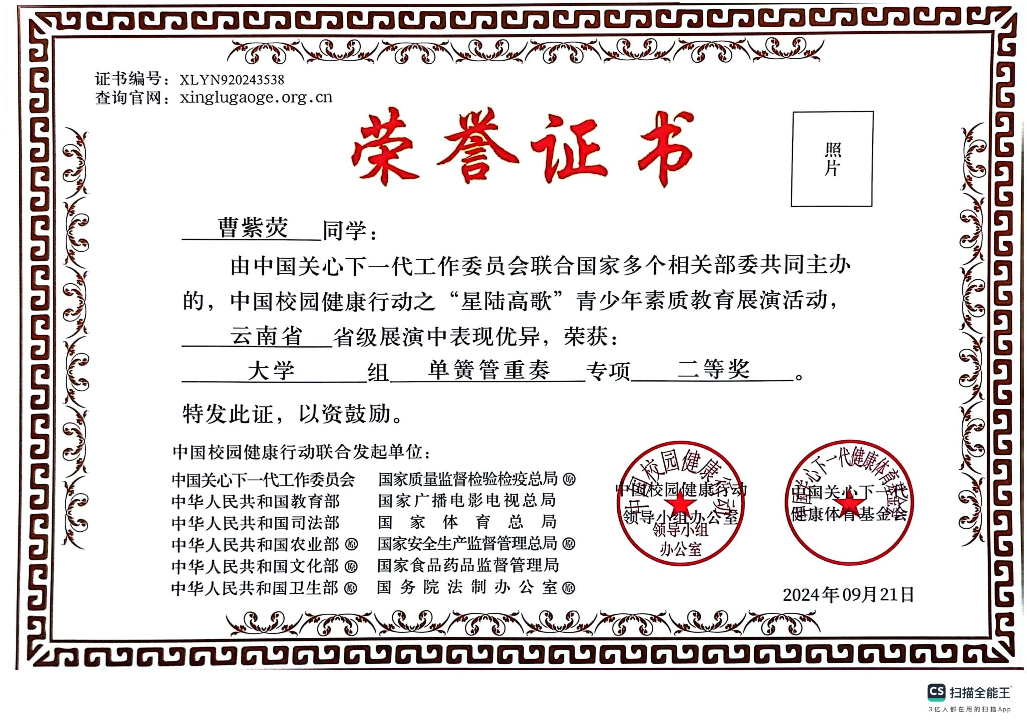 星陆高歌第九届校园交响音乐全国展演暨青少年素质教育展演(大学专业组)于7月3日在昆明顺利举办。pg娱乐电子游戏官网入口管弦系19名学生进入决赛并取得佳绩。