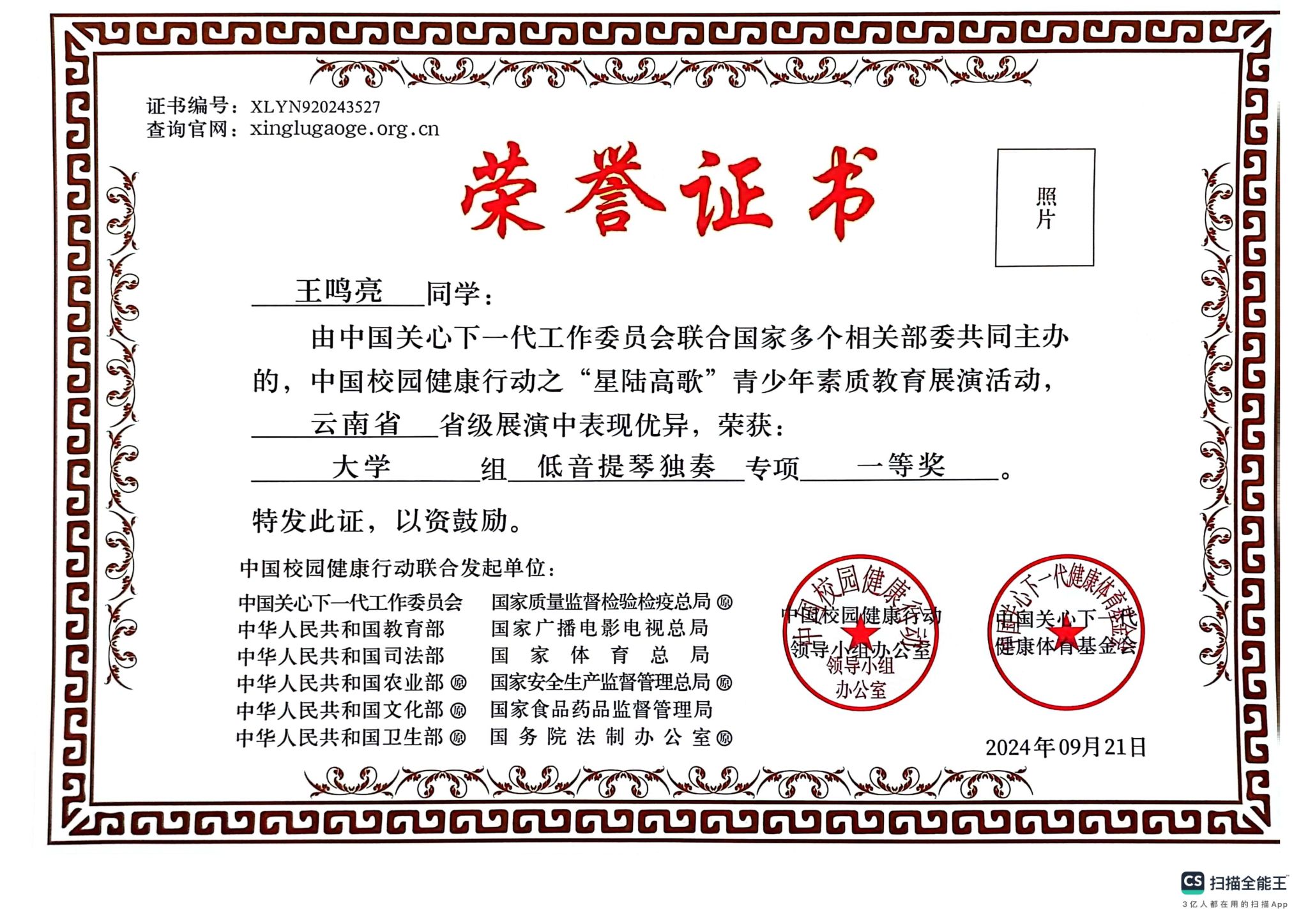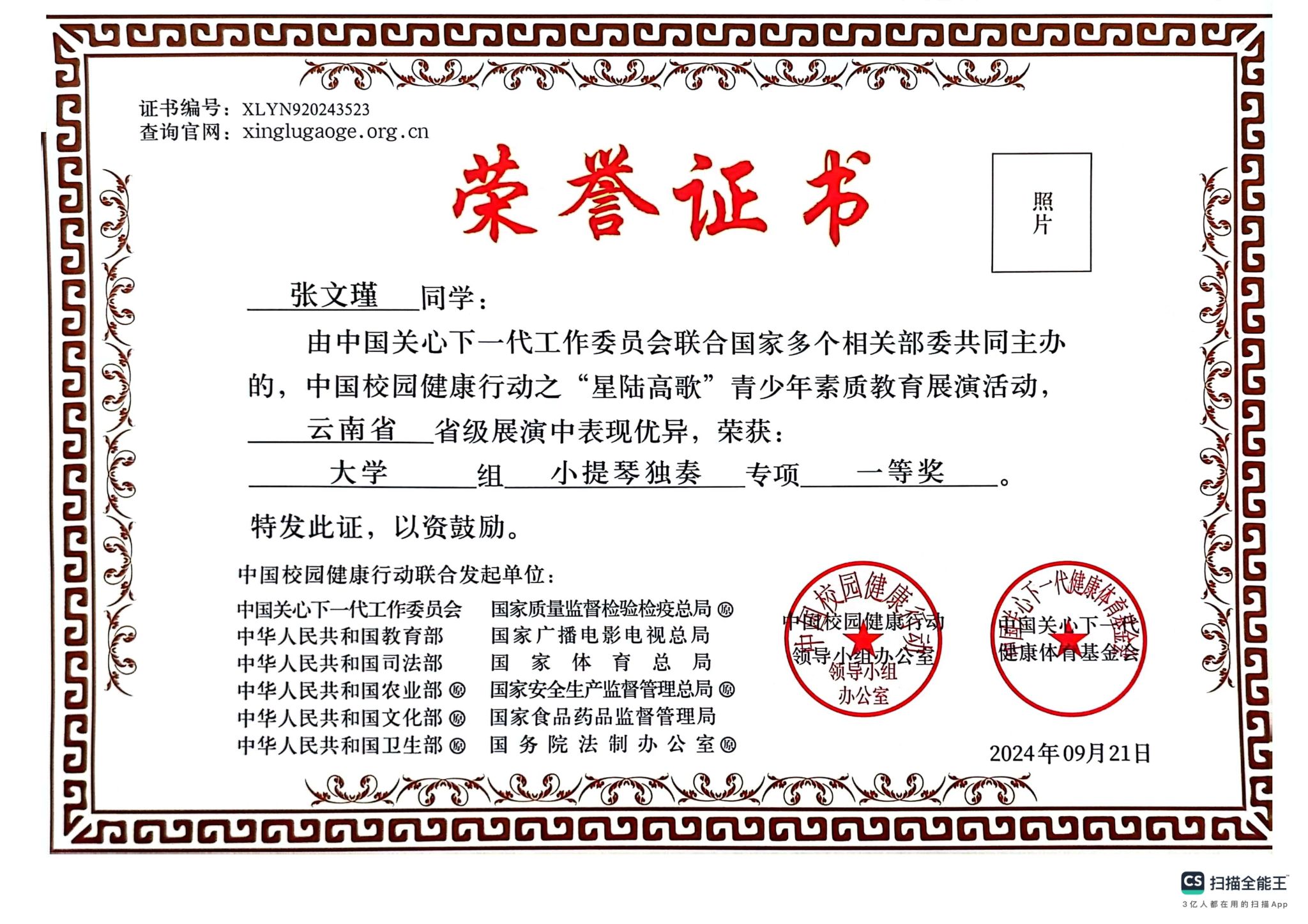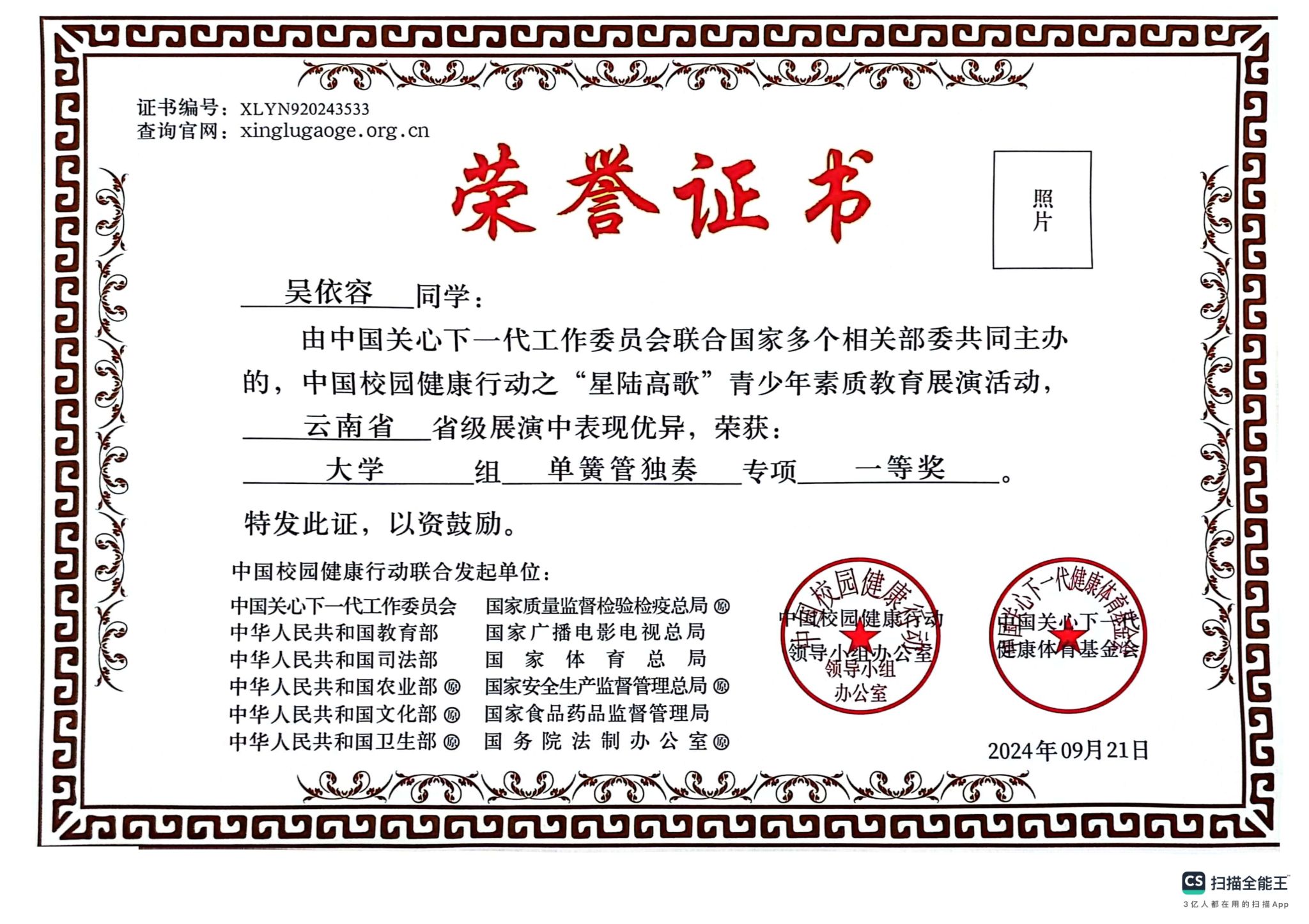 星陆高歌第九届校园交响音乐全国展演暨青少年素质教育展演(大学专业组)于7月3日在昆明顺利举办。pg娱乐电子游戏官网入口管弦系19名学生进入决赛并取得佳绩。