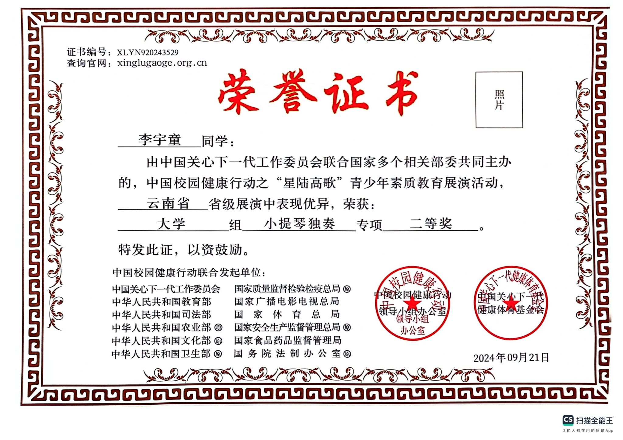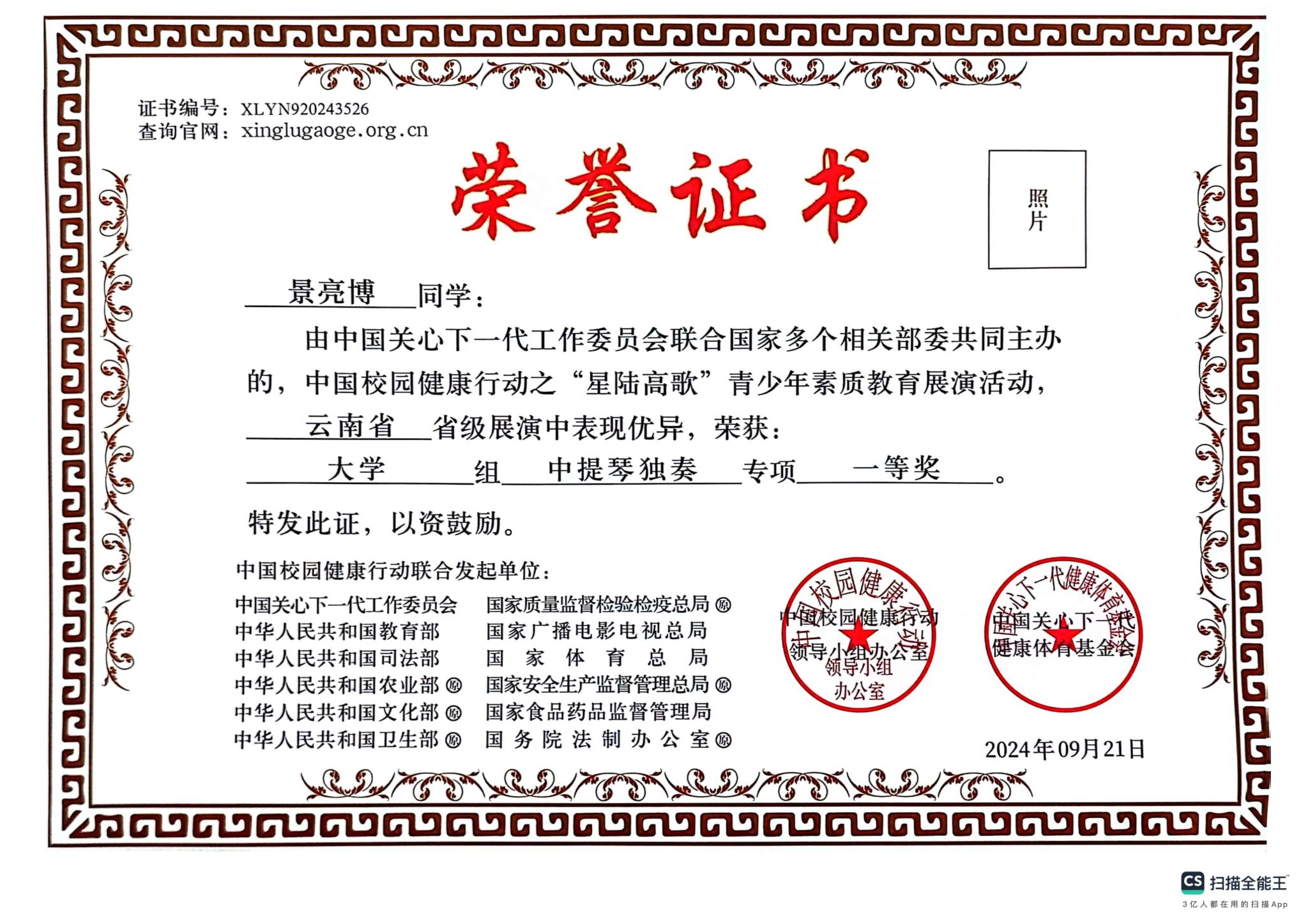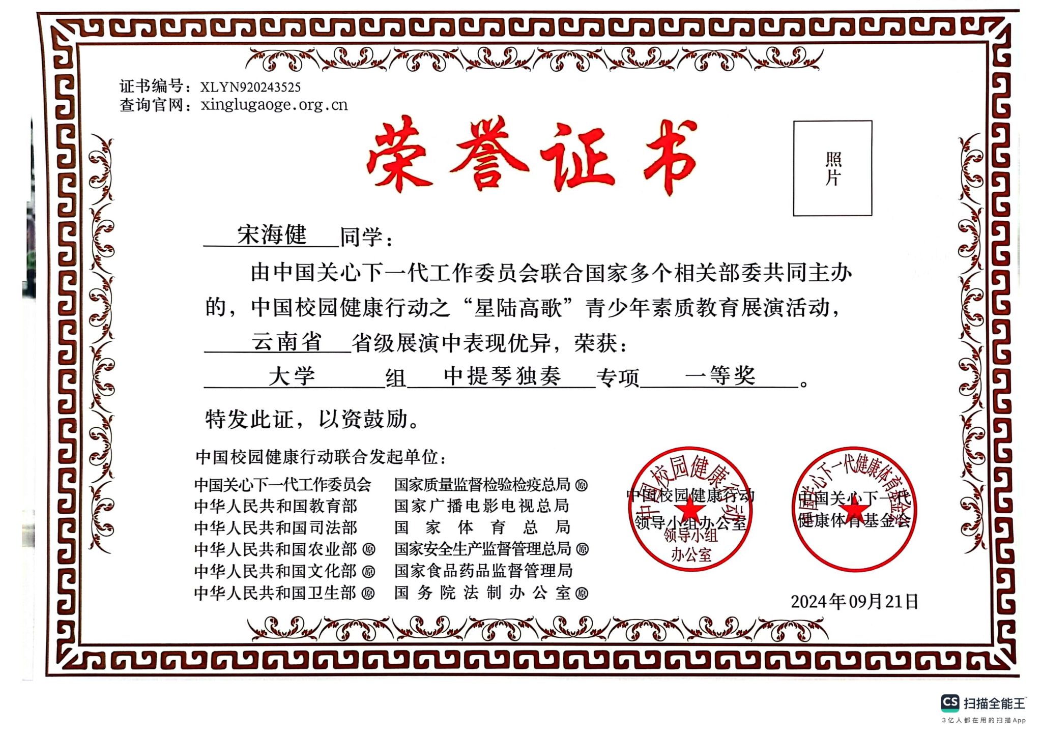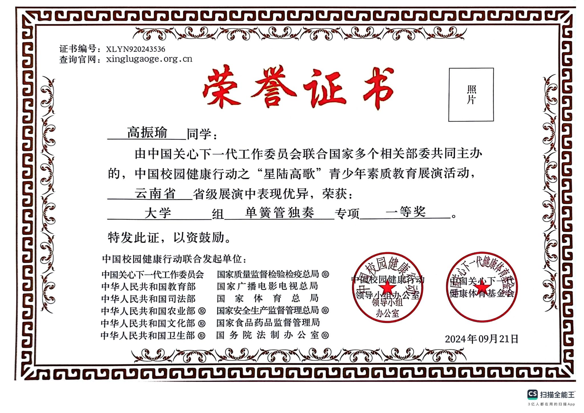星陆高歌第九届校园交响音乐全国展演暨青少年素质教育展演(大学专业组)于7月3日在昆明顺利举办。pg娱乐电子游戏官网入口管弦系19名学生进入决赛并取得佳绩。
