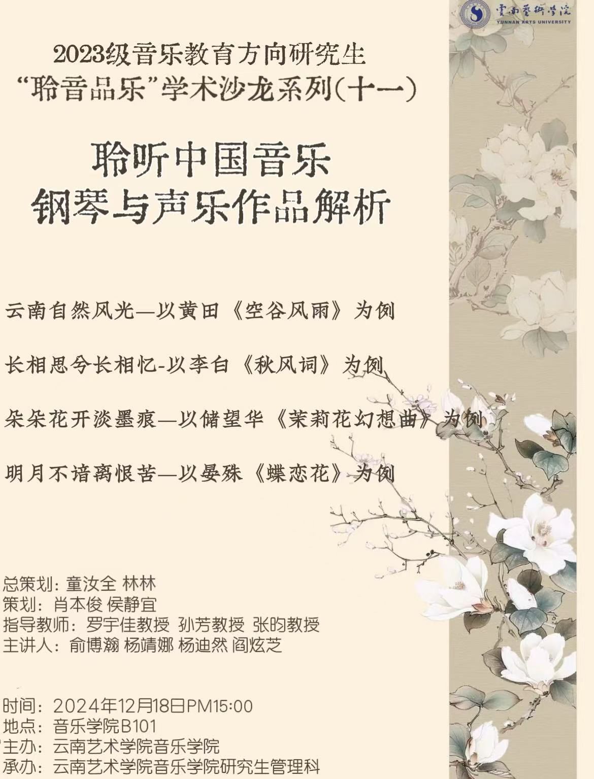 2023级音乐教育方向研究生“聆音品乐”学术沙龙系列(十一):聆听中国音乐钢琴与声乐作品解析
