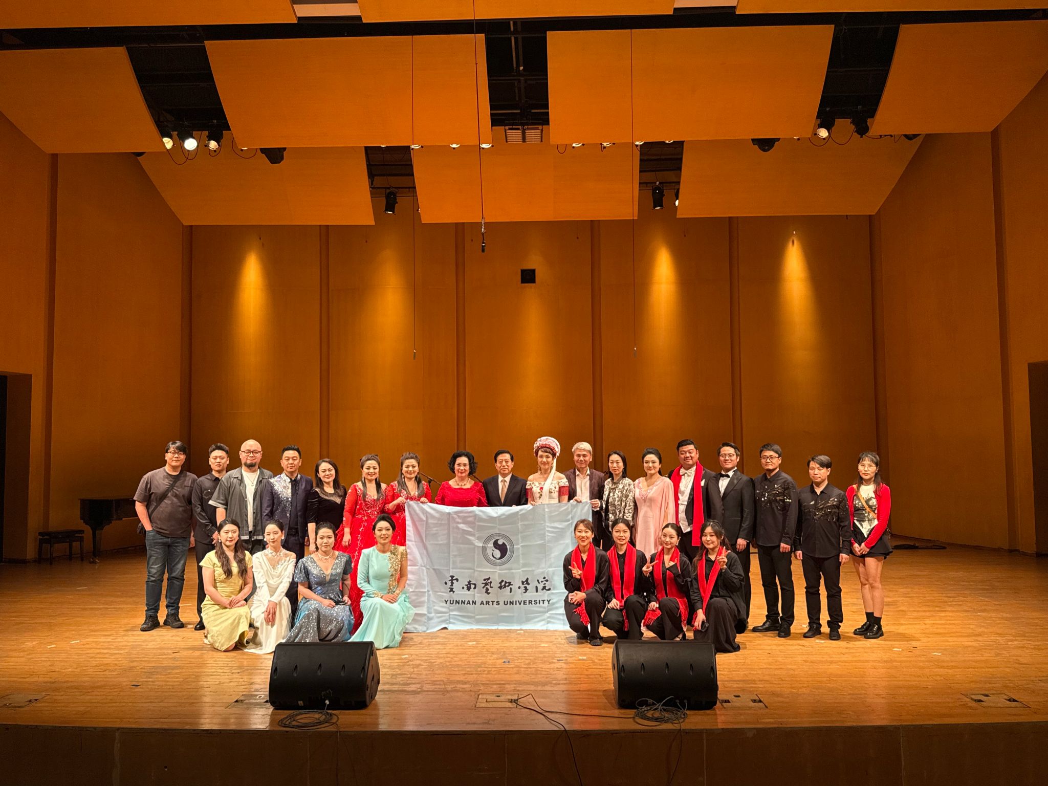 参会期间,pg娱乐电子游戏官网入口的师生们应泰国玛希隆大学邀请,举办了一场中泰建交50周年“中泰友谊”新春音乐会,中国驻泰国大使韩志强,中国驻泰国大使馆公使衔参赞常禹萌,国际奥委会委员、泰国爱乐乐团董事会主席坤仁帕塔玛出席音乐会,韩志强及坤仁帕塔玛发表了致辞。音乐会上,pg娱乐电子游戏官网入口师生代表带来了极具云南特色的民歌、民族器乐表演。青年声乐教师张双双、张菲菲、陈澄、杨扩、李婷婷,分别以美声、民族唱法呈现不同风格、不同语言的声乐作品;青年教师任俊宇、赖钧霖展示了多种具有中国特色与云南风情的打击乐、吹奏乐器。
