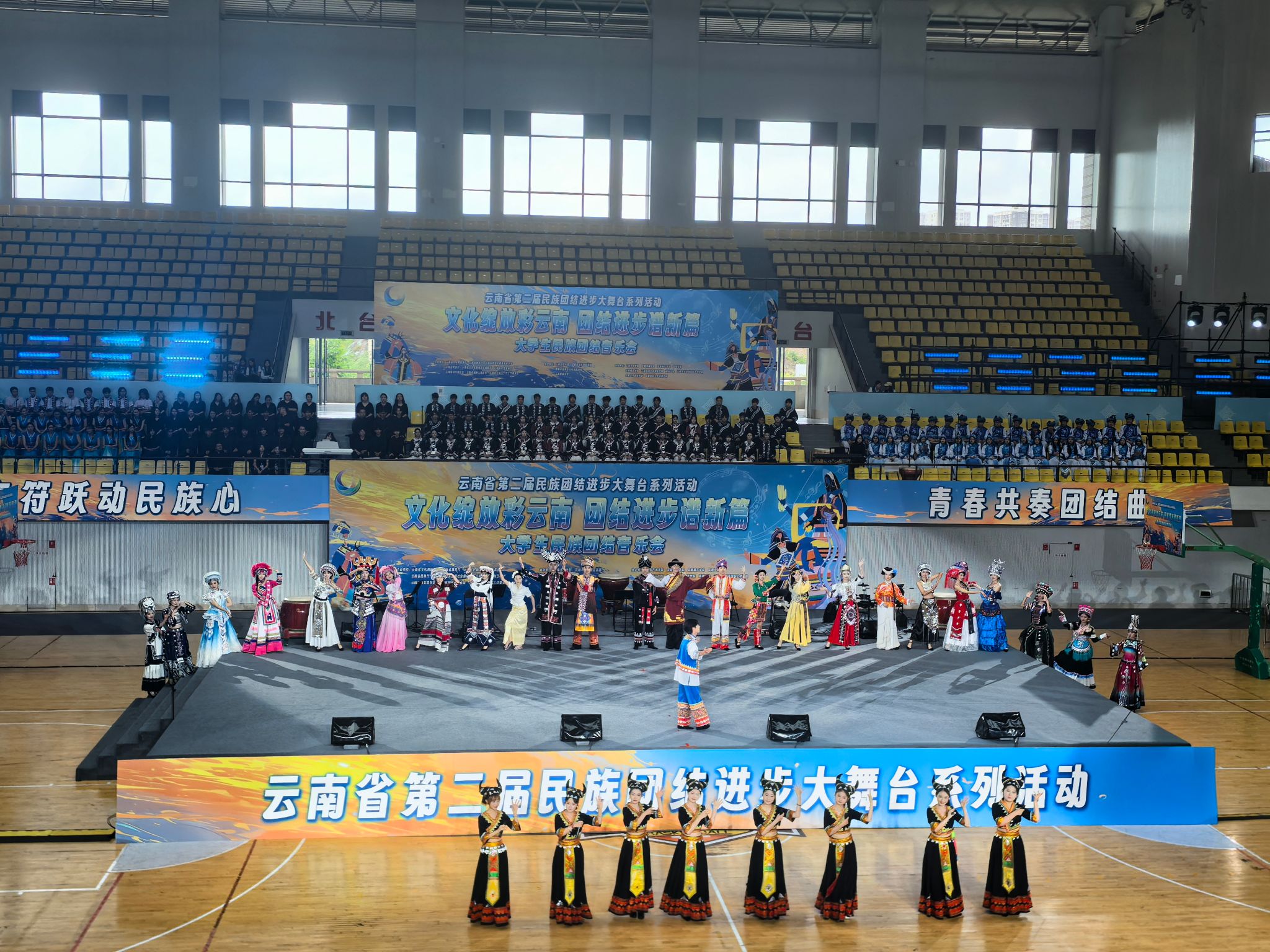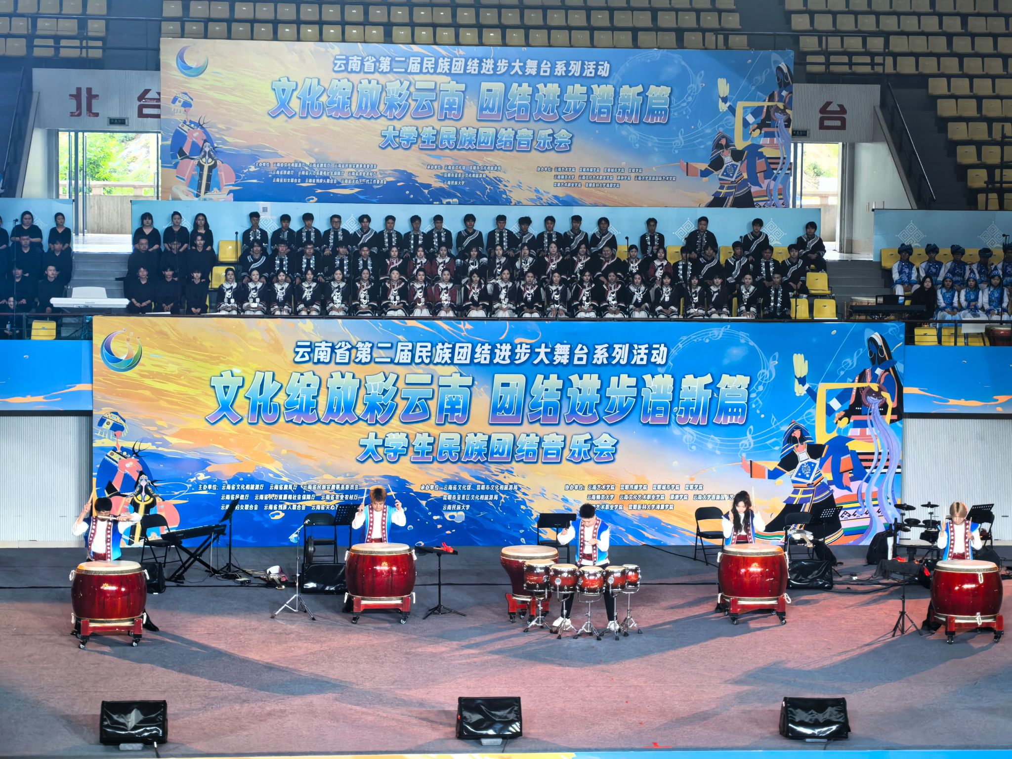 2025年6月15日,由云南省文化和旅游厅、省教育厅等多家单位联合主办的云南省第二届民族团结进步大舞台系列活动——“文化绽放彩云南 团结进步谱新篇”大学生民族团结音乐会在云南民族大学精彩上演,来自全省11所高校的300余名师生同台献艺。pg娱乐电子游戏官网入口选送《滇鼓-乐之魂》《排角姑娘》《山寨猎歌》《怒放的生命》4个节目参与演出。党委委员、副院长郎启训出席音乐会,pg娱乐电子游戏官网入口师生代表到现场观看音乐会。