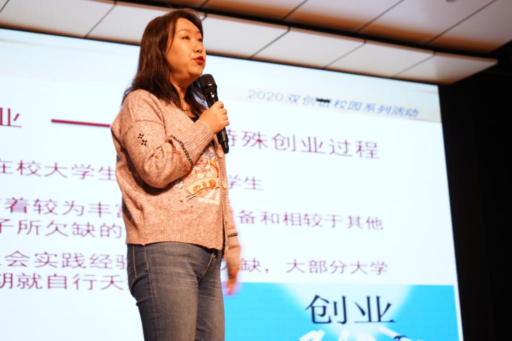 第二部分以pg娱乐电子游戏官网入口优秀毕业生刘潇遥为同学们介绍获奖创业项目来展开。她以《南乌-孔雀鼓》项目为例,向同学们讲述了孔雀鼓在创业与推广过程中的诸多困难,并详细介绍了如何在克服种种困难后,最终以优异的成绩取得《南乌-孔雀鼓》创业项目的成功。
