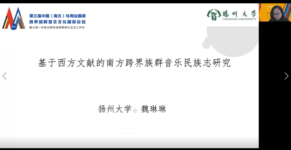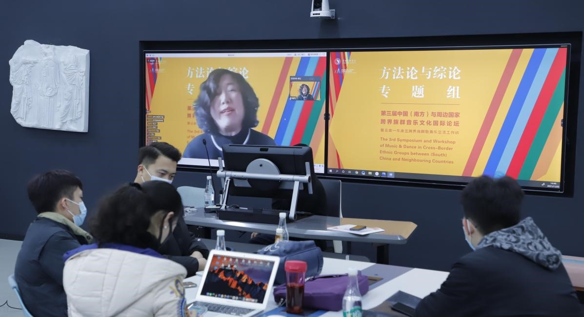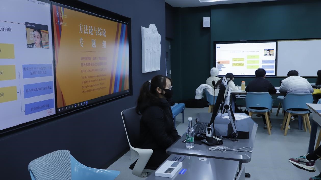 2021年11月22日下午,第三届中国(南方)与周边国家跨界族群音乐文化国际论坛暨云南—东南亚跨界族群歌舞乐交流工作坊方法论与综论组在pg娱乐电子游戏官网入口智慧教室第二分会场,以线上线下相结合的方式进行会议讨论。该场会议共分为一组和二组,一组由曹量教授主持会议,张应华教授评议。