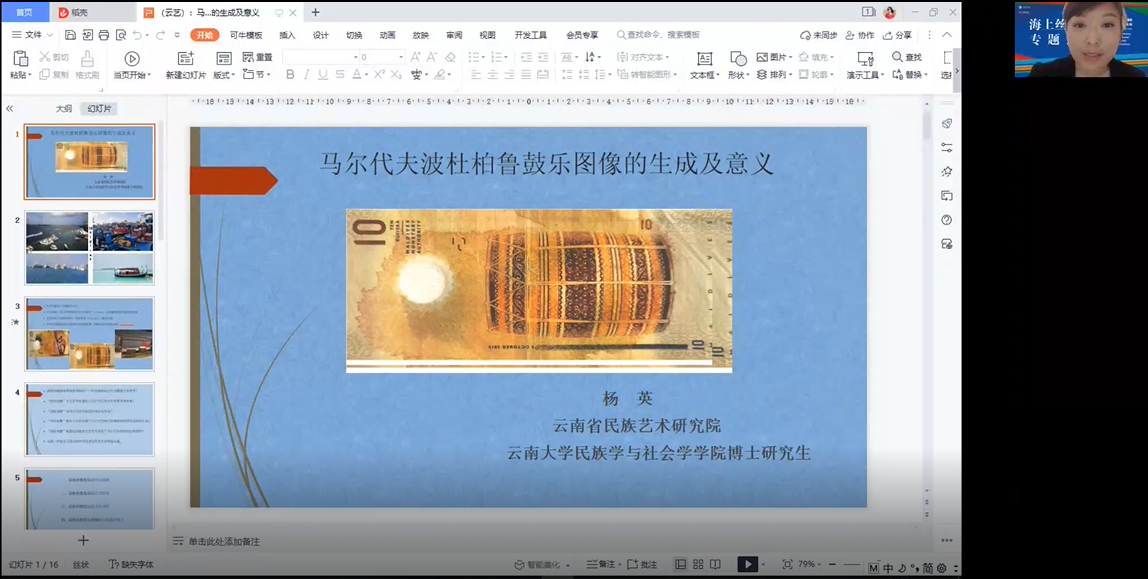 云南民族艺术研究院杨英的《马尔代夫波杜柏鲁鼓乐图像的生成及意义》,因波杜柏鲁鼓的图像出现在马尔代夫货币上引发了杨英一系列的思考,杨英通过对波杜柏鲁的历史渊源、艺术特征、开发利用进行分析,最终对马尔代夫波杜柏鲁鼓乐图像的民族国家意义进行阐释。