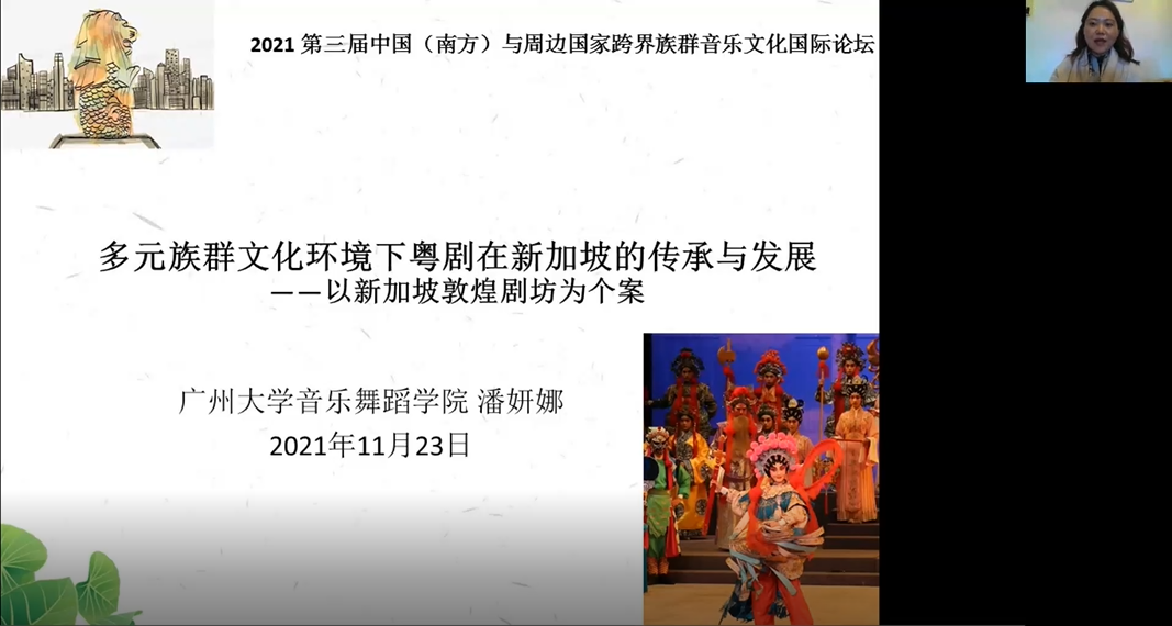 广州大学潘妍娜的《敦煌剧坊与粤剧在新加坡的传承与发展》在基于两次海外田野考察上,认为方言文化为标志的地域认同的界限正在逐渐模糊。粤剧在新加坡就扮演了营造“他乡是故乡”的社会功能,在当下新加坡种族和谐政策之下,粤剧作为“乡情”的意义正逐步淡化。