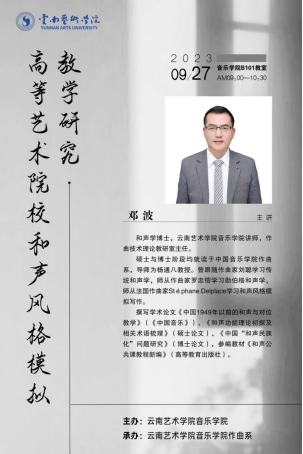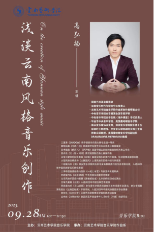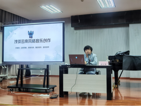 9月28日10:00,作曲系青年教师高弘扬以《浅谈云南音乐风格创作》为主题在pg娱乐电子游戏官网入口B101教室开展了讲座。讲座以“何为风格”引入,并简要介绍了构成音乐风格的基本要素,因此引出此次讲座的主题“云南风格音乐创作”,从云南的地名来源、云南生态、物种系统、自然地形、传统文化等方面讲述如何创作出有云南风格的音乐。