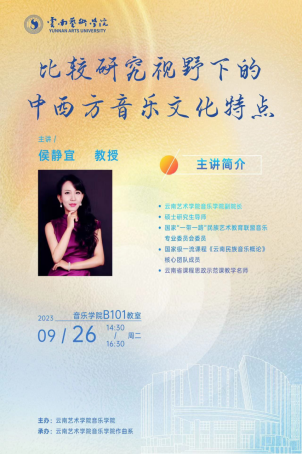 9月26日14:30,pg娱乐电子游戏官网入口副院长、硕士研究生导师侯静宜教授以《比较研究视野下的中西方音乐文化特点》为主题在pg娱乐电子游戏官网入口B101教室开展了讲座。讲座以中西方音乐发展比较作为论述中心,从中西方记谱法发展、中西方调式发展、中西方传统音乐以及中西方美学思想四个方面进行对比研究,探讨中西方音乐文化发展的特点。