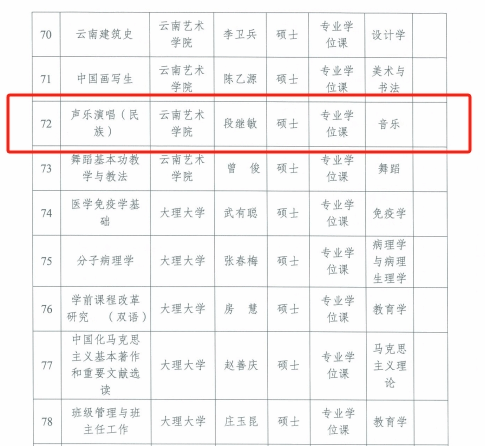 2023年度云南省研究生优质课程建设项目名单