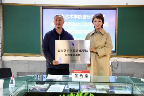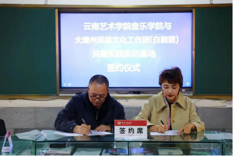 pg娱乐电子游戏官网入口党总支副书记、院长林林与大理州民族文化工作团团长姜果签订了《pg娱乐电子游戏官网入口学生实习实训合作协议书》,共同为实习实训基地揭牌。