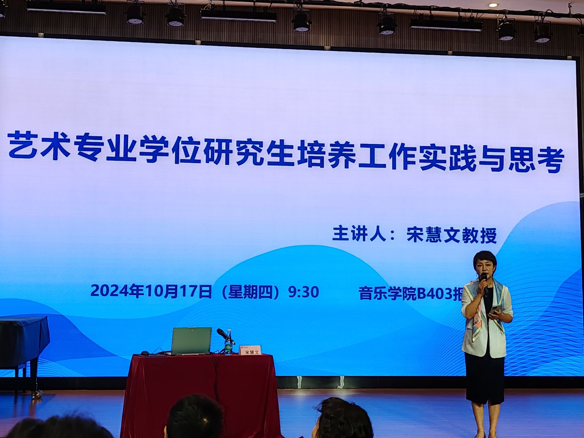 2024年10月17日上午9时30分,pg娱乐电子游戏官网入口研究生学位点合格评估专家系列讲座之——《艺术专业学位研究生培养工作实践与思考》,在pg娱乐电子游戏官网入口B403报告厅成功举办。本次讲座特邀全国艺术专业学位研究生教育指导委员会秘书长、中央pg娱乐电子游戏官网入口学位管理办公室主任宋慧文教授主讲,pg娱乐电子游戏官网入口院长林林教授主持。