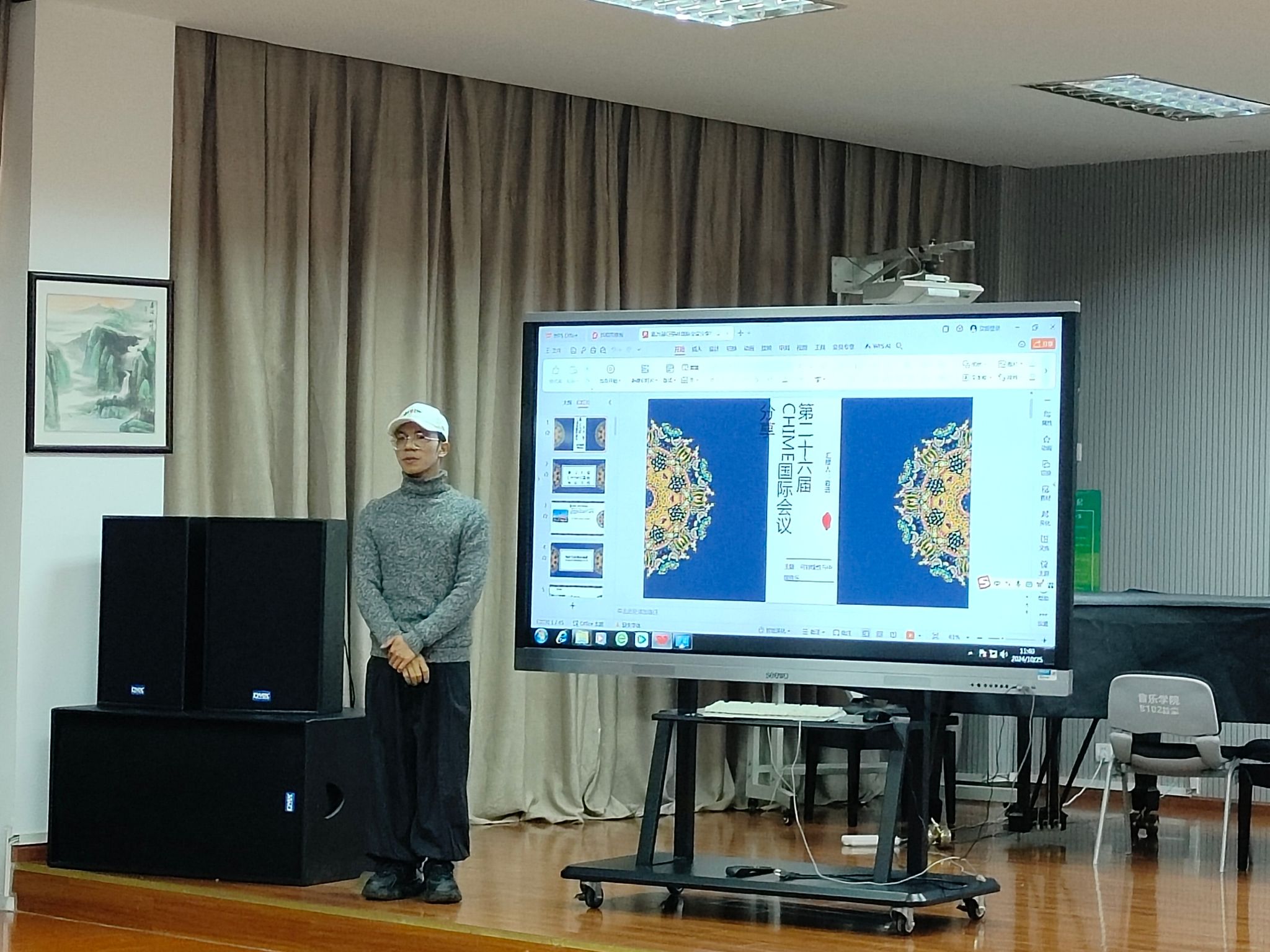 音乐学系优秀学生岩进的赴德分享交流将会议推向了高潮。在分享过程中,岩进将其在10月3日至6日在德国参加第26届CHIME国际会议的经历与感悟以“总-分-总”的形式,对会议的情况和研究内容进行了介绍并提出了他个人在民族音乐文化活态化上的三点见解,强调非遗活化工作中守护传统文化核心价值及避免“变容”的重要性。岩进此次跨国高端学术会议的交流再次展现了pg娱乐电子游戏官网入口的办学特色。