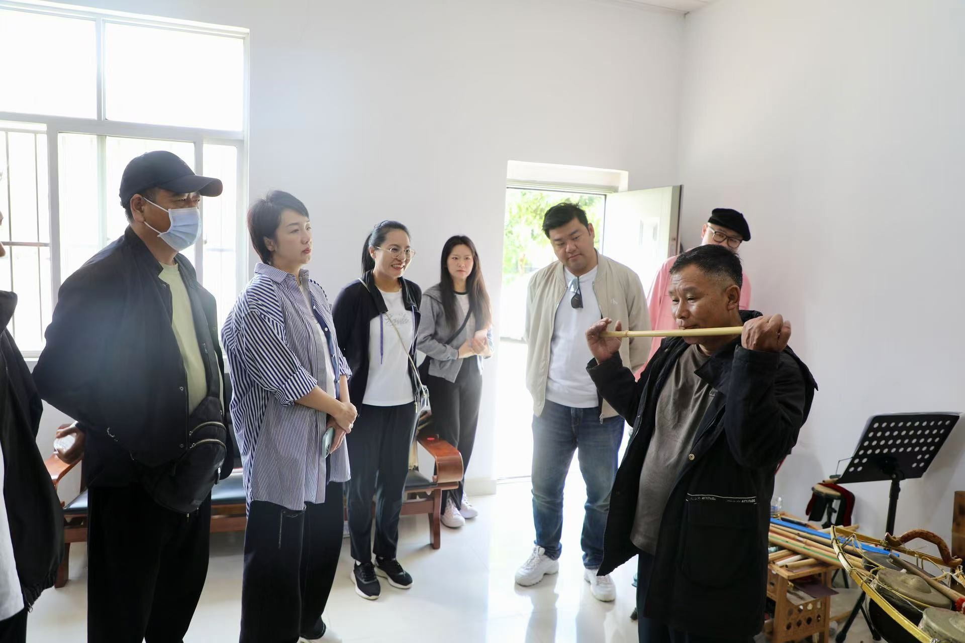 在德宏州歌舞团民族器乐制作研究室,团队详细了解了民族乐器的制作工艺与技术。研究室负责人向大家展示了制作过程中需要掌握的关键技能,并对几种特色乐器(如土良、勒荣、柯瓦、柯栽等)传统民族器乐的演奏技巧进行了专业讲解。师生们还亲自参与了部分乐器制作环节,亲身感受了传统工艺的独特魅力。交流过程中,团队还分享了pg娱乐电子游戏官网入口在民族音乐研究领域的最新成果。