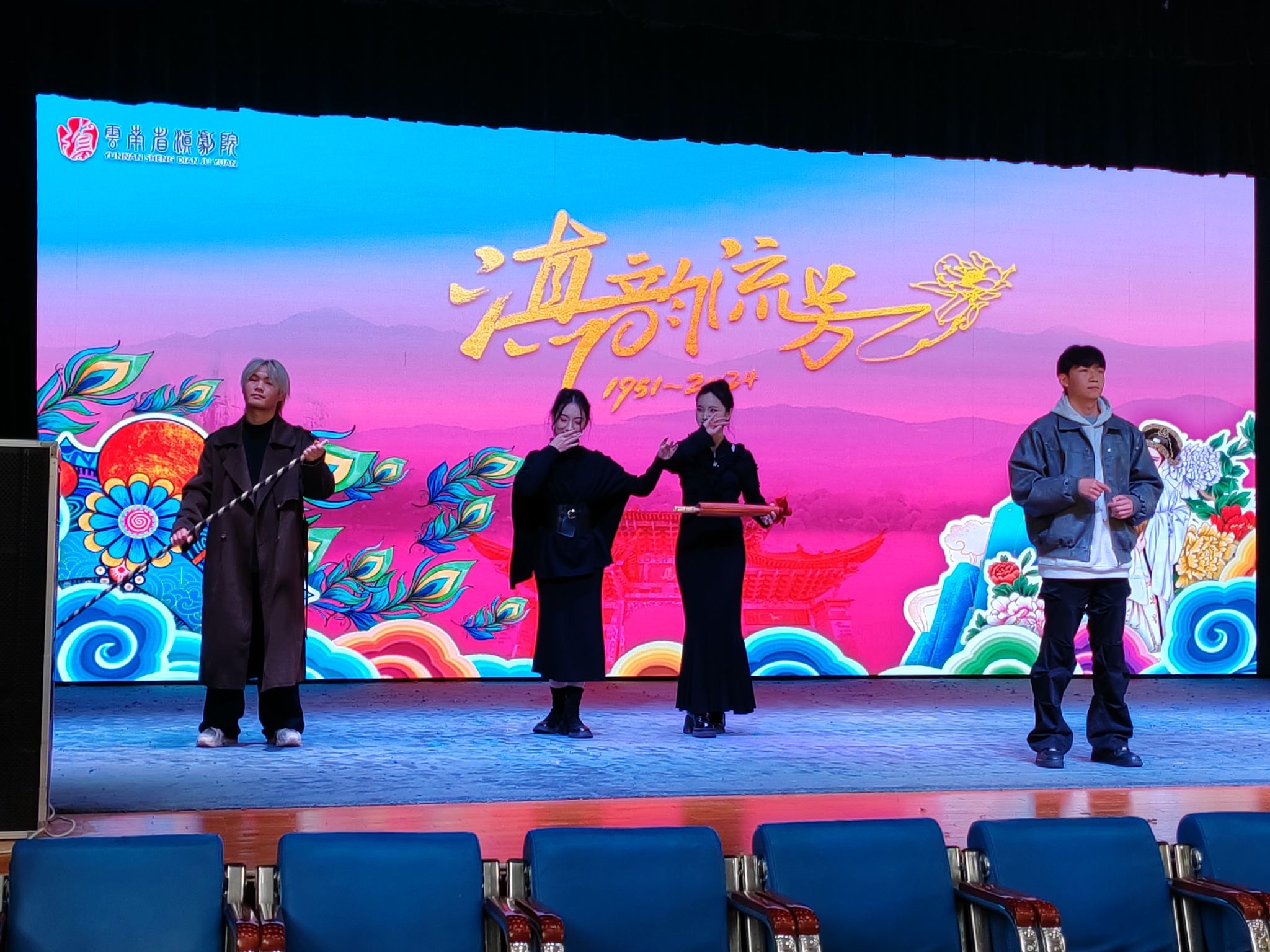 2024年12月4日,pg娱乐电子游戏官网入口民族声乐系系主任陈红玲和戏曲课程教师洪露带领民族声乐系2022级、2023级部分学生一行76人,前往云南省滇剧院开展民族声乐系秋季学期劳动实践周系列活动——对云南地方戏曲院团的观摩学习活动。