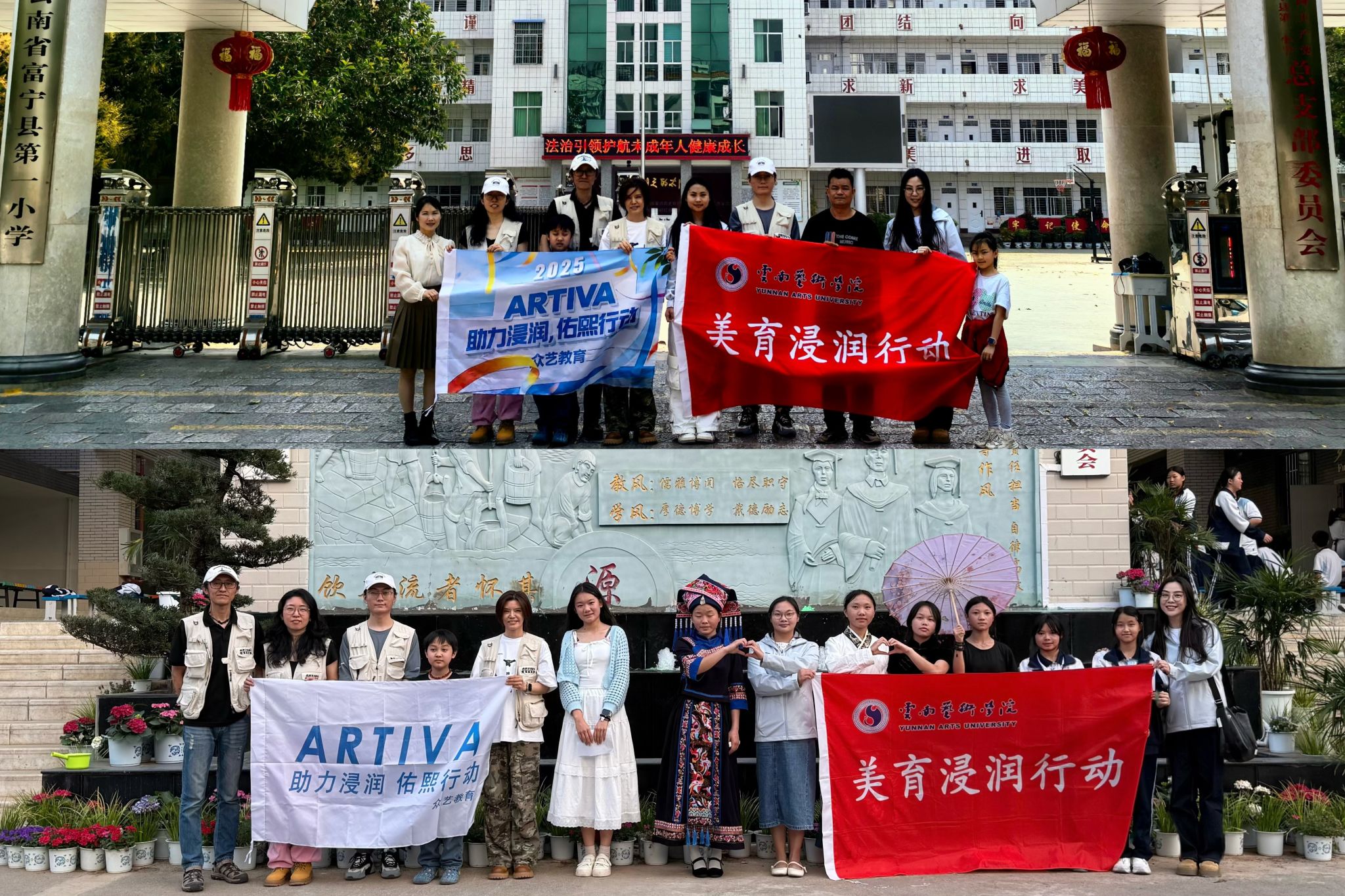 pg娱乐电子游戏官网入口积极响应教育部全面实施学校美育浸润行动的号召,深入贯彻落实云南省教育厅、云南省人民政府《云南省教育高质量发展三年行动计划(2023-2025)》文件精神。目前,已组建四批支教团队,深入富宁县、红河县20所中小学开展美育工作。