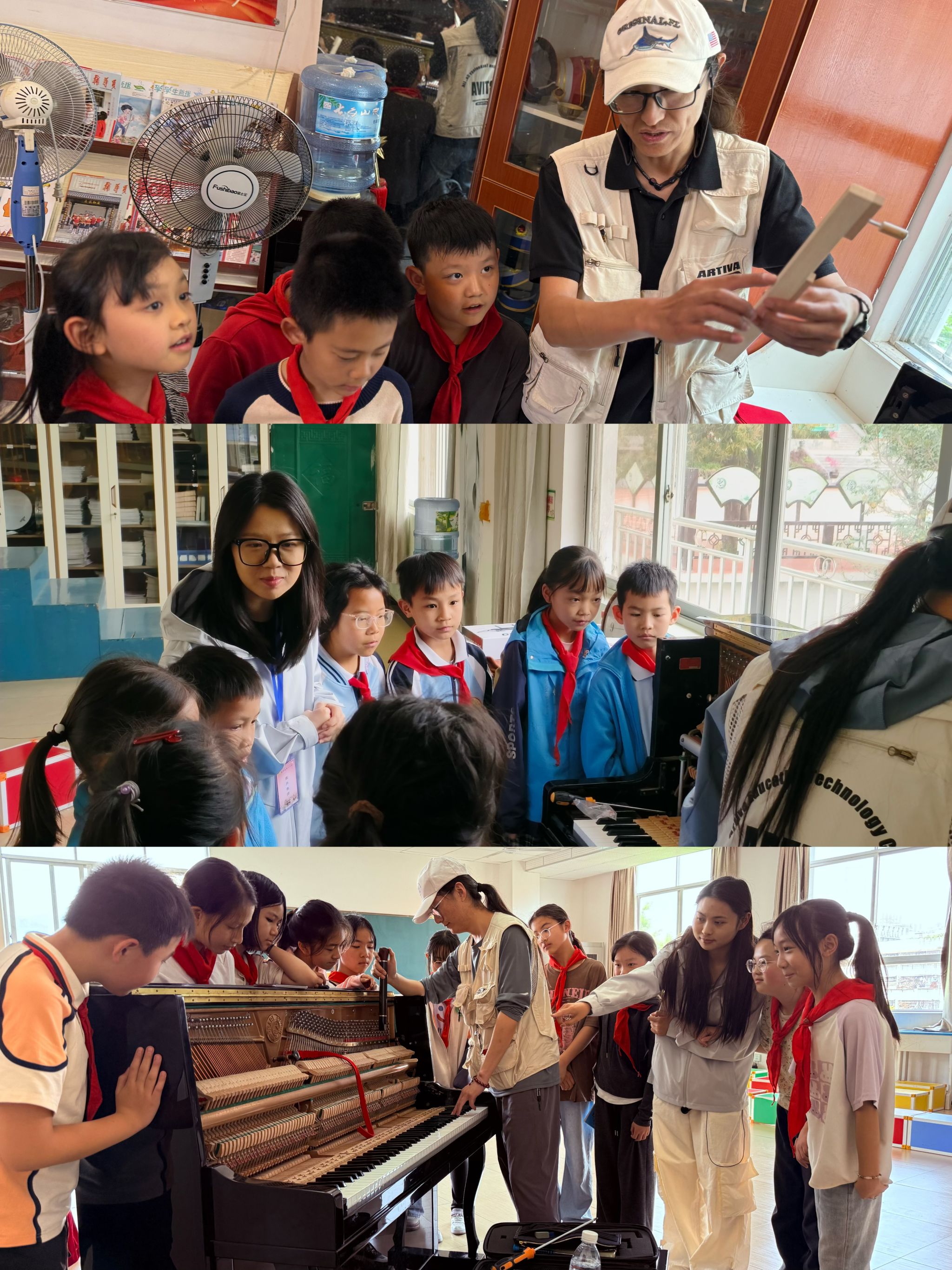 pg娱乐电子游戏官网入口第四批驻点师生积极协助协调,确保工作顺利推进。随后,团队成员迅速展开工作,在一周内高质量完成了7所学校24台钢琴的调律与维修任务,余下的48台钢琴预计将在一个月内全部完成。在开展钢琴调律工作的同时,团队成员还向当地师生传授钢琴维护知识和常见故障处理方法,激发学生对乐器的兴趣,提升学生的美育素养。
