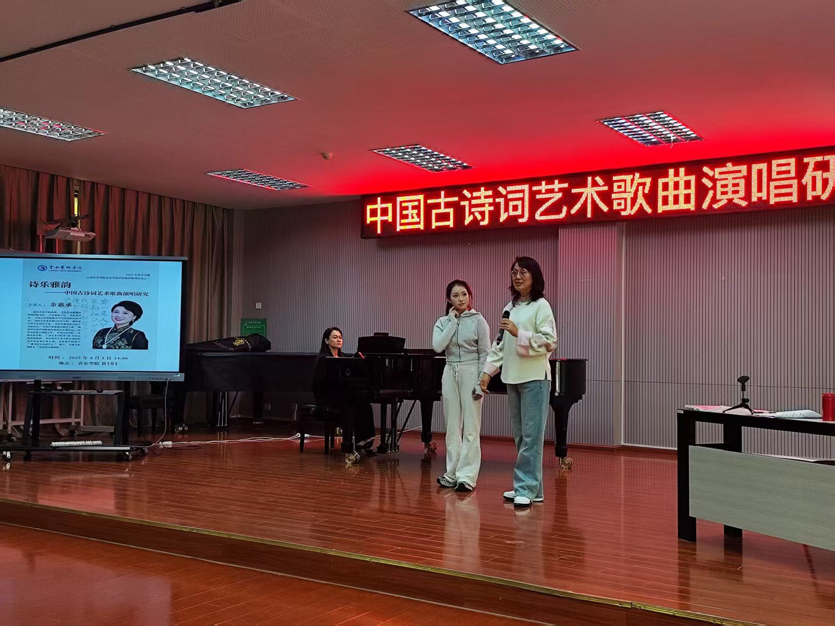 2025年4月3日,pg娱乐电子游戏官网入口举办《诗乐雅韵——中国古诗词艺术歌曲演唱研究》学术讲座,本场讲座由武汉pg娱乐电子游戏官网入口教授、国家艺术基金项目评审专家、教育部学位中心评审专家、中国少数民族声乐学会副会长、中国声乐家协会执行主席余惠承教授主讲,pg娱乐电子游戏官网入口民族声乐系系主任陈红玲教授主持,pg娱乐电子游戏官网入口院长林林教授及部分师生参加。