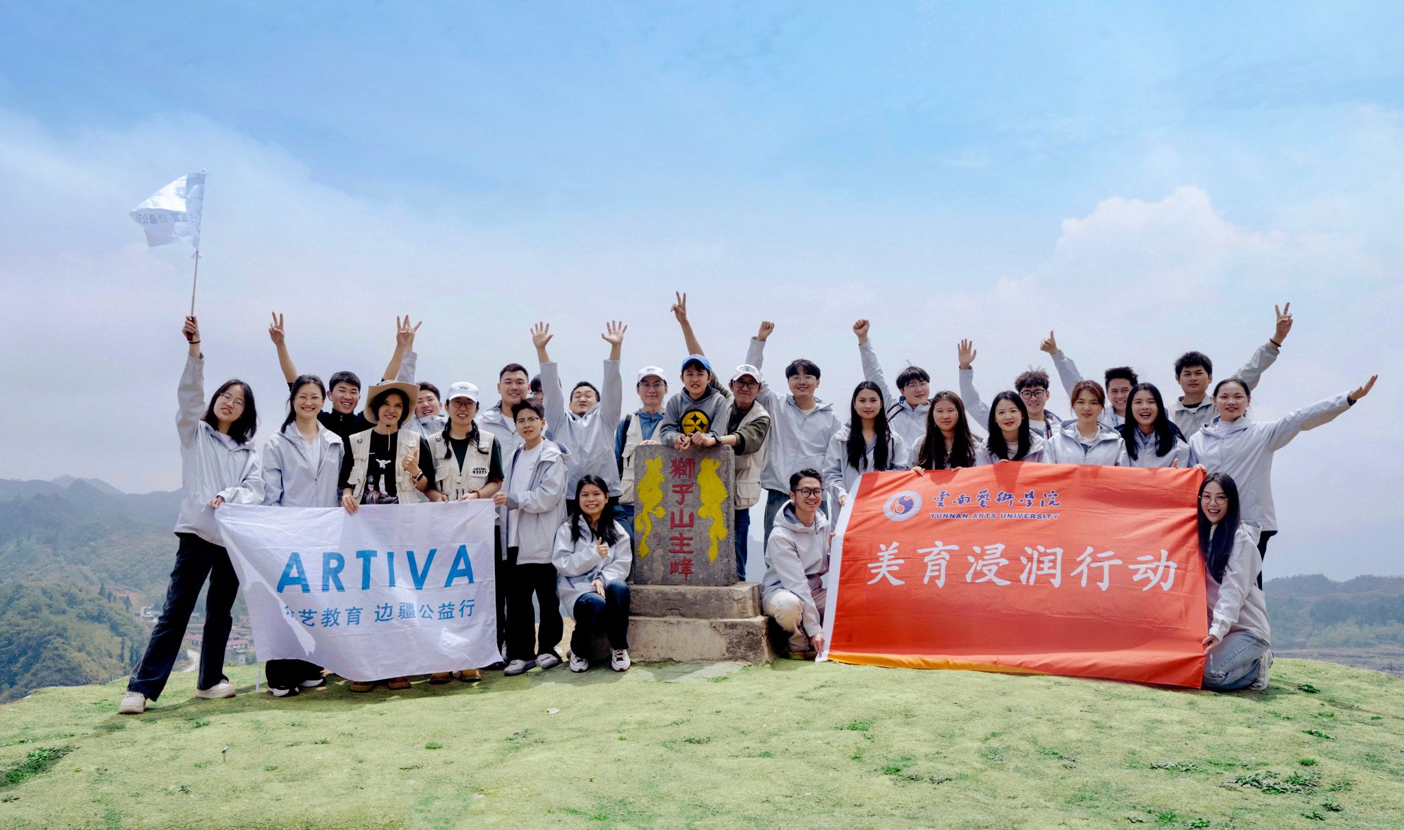 课余时间,支教团队组织学生开展登山研学活动,攀登田蓬镇狮子山。沿途师生共同领略自然风光,传承红色基因,接受生动的爱国主义教育洗礼。在山巅,大家合影留念,以青春姿态铭记此次美育之行的收获与成长。