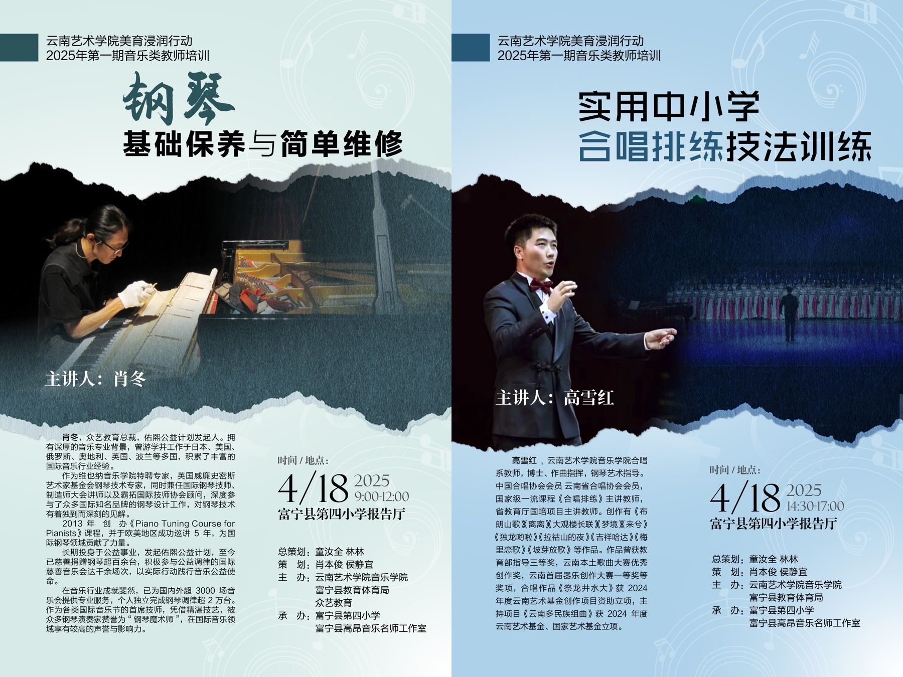 为贯彻落实立德树人根本任务,持续推动义务教育阶段美育质量提升,4月18日,pg娱乐电子游戏官网入口“美育浸润行动”团队走进文山州富宁县,在富宁县第四小学举办2025年美育浸润计划第一期中小学音乐教师培训。