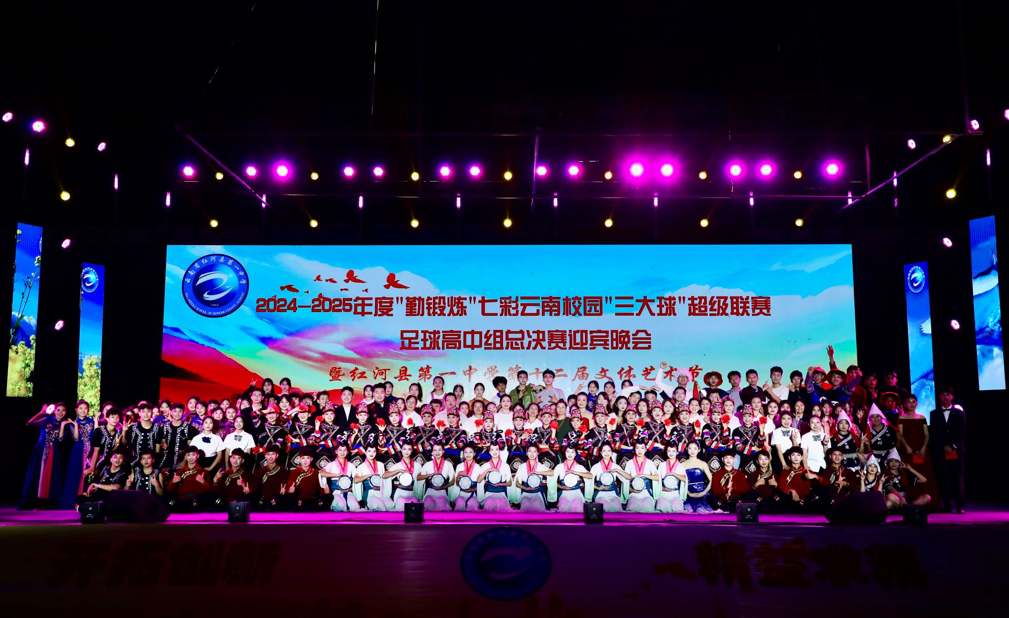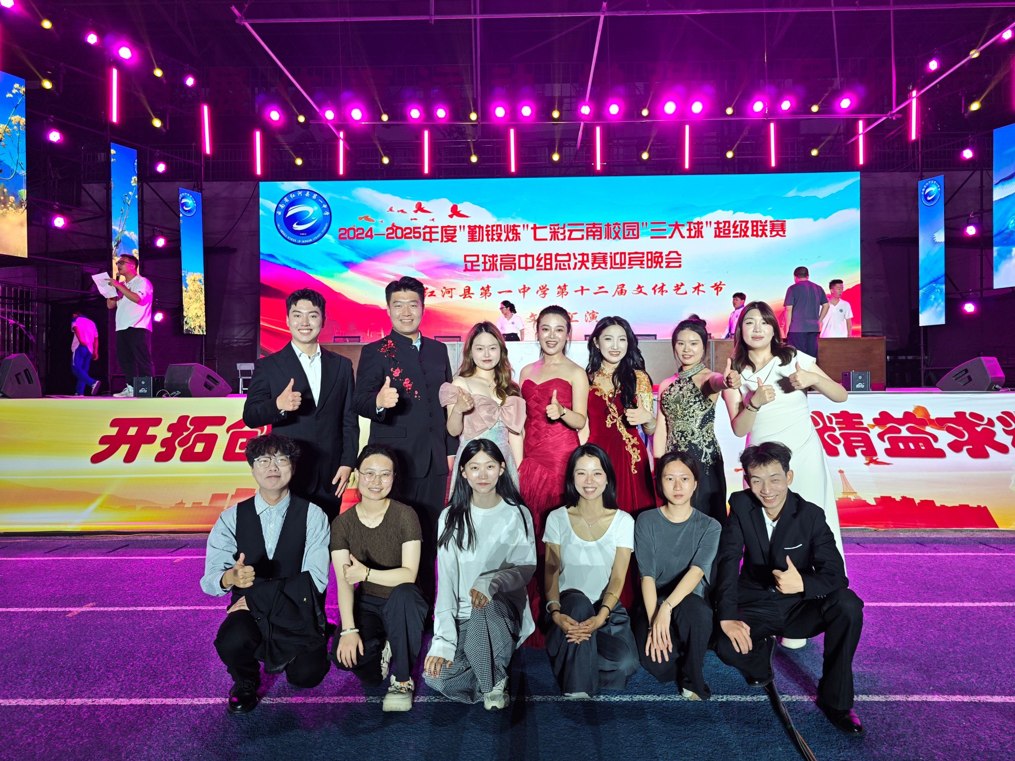 2025年4月25日,由云南省教育厅、云南省体育局、云南广播电视台和云南省学生体育协会主办,pg娱乐电子游戏官网入口与红河县教体局、红河县第一中学联合承办的《2024-2025年度“勤锻炼”七彩云南校园“三大球”超级联赛足球高中组总决赛迎宾晚会暨红河县第一中学第十二届文体艺术节》在红河县第一中学隆重举行。pg娱乐电子游戏官网入口"美育浸润计划"带队教师与支教学生以饱满的艺术激情与一中学生共同呈现了十余个精彩节目,并为26号超级联赛开幕式献上了励志歌曲《骄傲的少年》。