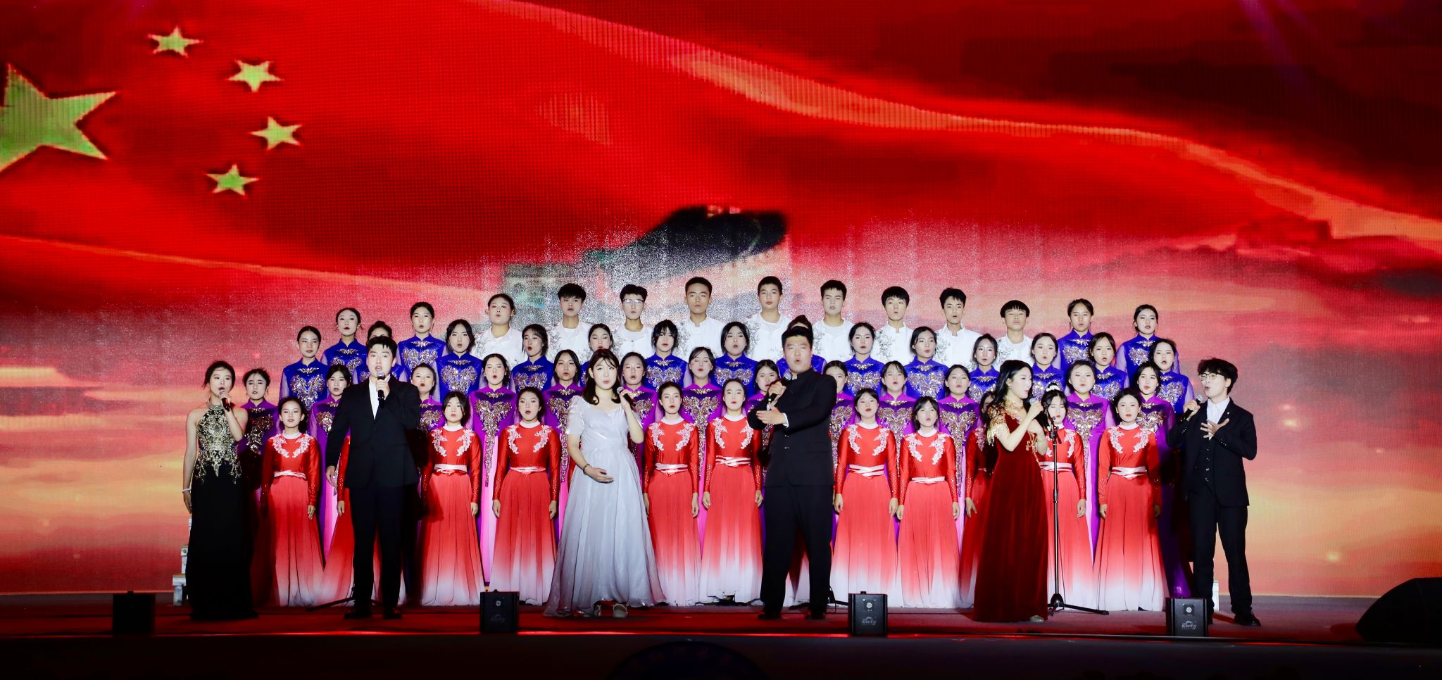 晚会开始,由pg娱乐电子游戏官网入口“美育浸润计划”成员与红河县一中合唱团共同演绎的开场曲《向明天远航》。六位领唱学子的清亮歌声与合唱团的大气磅礴歌声交相辉映,以饱满的热情唱响了青春追梦的乐章。随后又带来了女生独唱《大红河》、男生四重唱《放马山歌》、女生四重唱《中国之恋》。