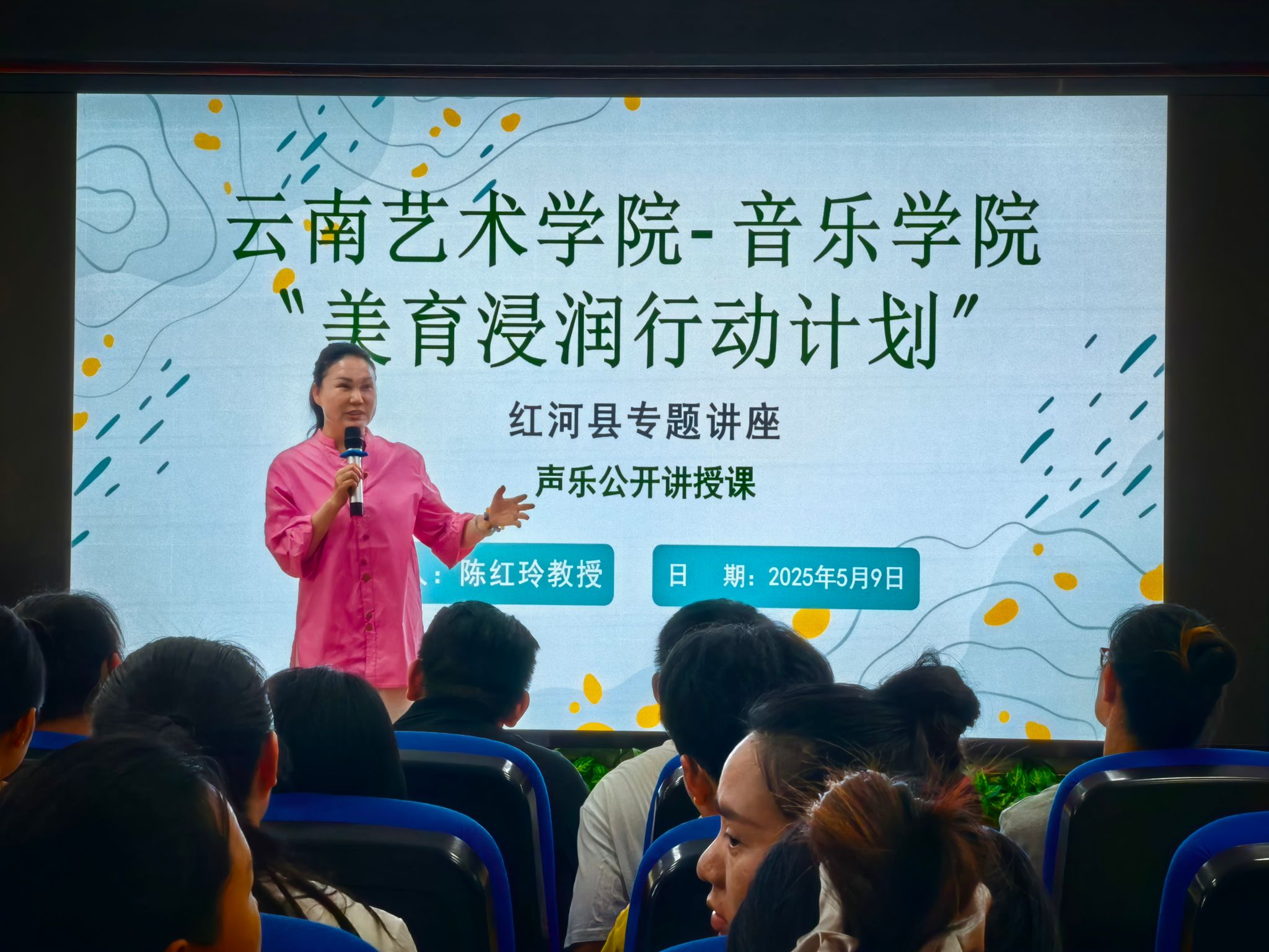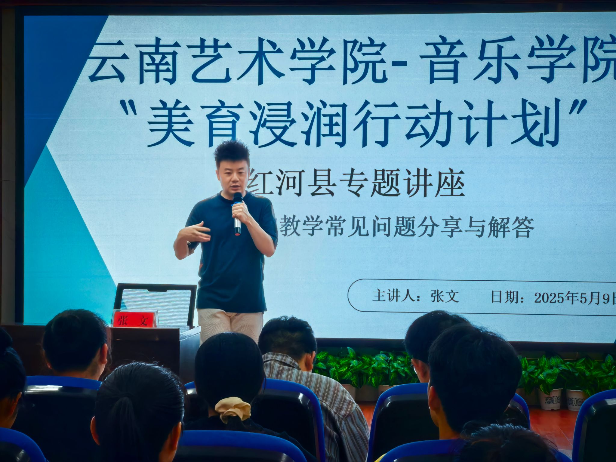 为认真贯彻全省教育工作会议精神,落实落细美育浸润行动计划,2025年5月10日,pg娱乐电子游戏官网入口陈红玲教授、张文博士到红河县开展“美育浸润行动”音乐教师能力提升培训。本次美育专题培训由红河县教育体育局与pg娱乐电子游戏官网入口联合举办。