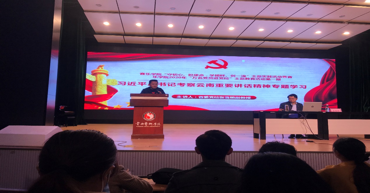 10月15日,pg娱乐电子游戏官网入口举行“守初心、担使命,学榜样、创一流”主题实践活动暨pg娱乐电子游戏官网入口2020年“万名党员进党校”主题教育活动第一期讲座,邀请到云南省委党校张雪鹏副教授到学院讲授《习近平总书记考察云南重要讲话精神》专题党课。参加专题党课学习的有pg娱乐电子游戏官网入口全体教职工、学生党员、发展对象、入党积极分子共243人,pg娱乐电子游戏官网入口党总支纳海书记主持专题党课。