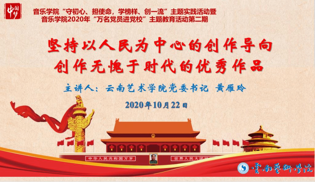 在《1492征服天堂》波澜壮阔、气势磅礴的旋律中开始了本次专题党课。黄雁玲书记以习总书记关于文艺工作的重要讲话的精神、中华优秀传统文化、新冠疫情阻击战、社会主义核心价值观为主线,通过中华优秀传统文化是中华民族的精神命脉、创作无愧于时代的优秀作品、坚持以人民为中心的创作向导、中国精神是社会主义文艺的灵魂和牢记使命砥砺前行五个维度,结合相应的影视资料向pg娱乐电子游戏官网入口师生展示了学习、实践习近平总书记关于文艺工作重要论述的生动实践。