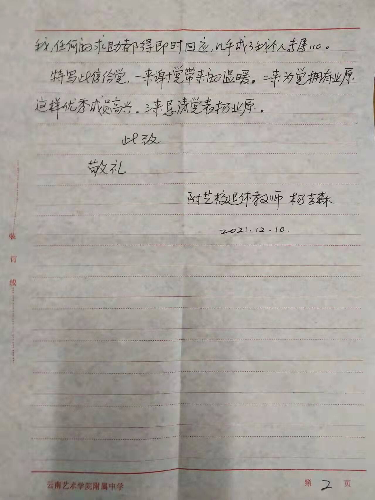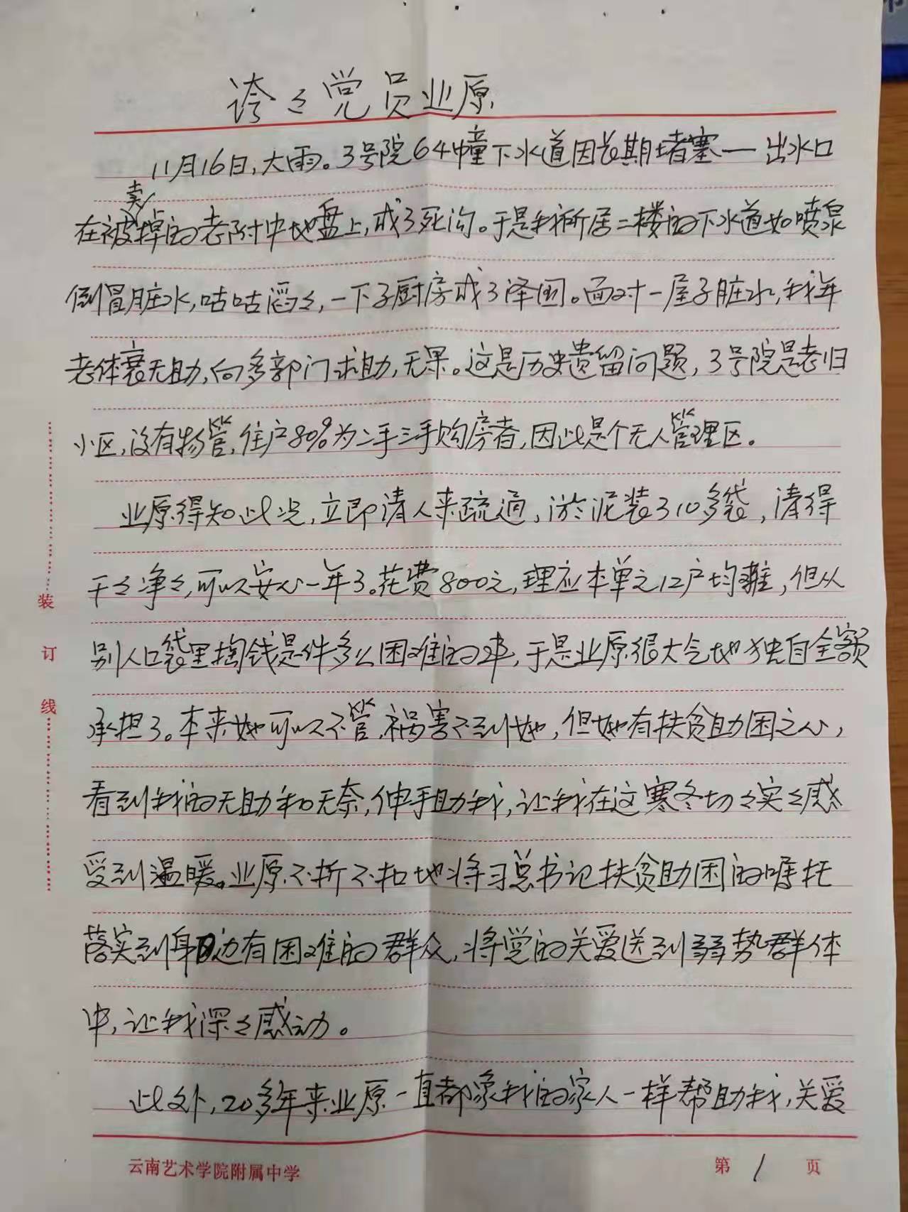 pg娱乐电子游戏官网入口离退休杨吉森老师亲笔书写感谢表扬信,感谢pg娱乐电子游戏官网入口党员业原同志。