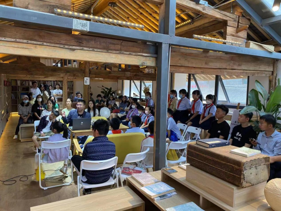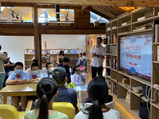 2022年7月9日,由pg娱乐电子游戏官网入口艺术管理学院党总支和pg娱乐电子游戏官网入口党总支联合组织策划的“喜迎二十大,赓续红色血脉之艺说党史”系列活动之“音乐作品中的党史”暨pg娱乐电子游戏官网入口教工第一党支部7月份主题党日活动在呈贡区万溪冲社区禾下咖啡书屋开展,此次活动是校地企党史教育暨乡村养育系列主题活动之一,艺术管理学院党总支书记谭尧升、pg娱乐电子游戏官网入口党总支副书记黄涛、pg娱乐电子游戏官网入口副院长侯静宜、艺术管理学院党总支组织委员刘林、pg娱乐电子游戏官网入口教工第一党支部全体党员、入党积极分子和作曲系、流行音乐系、管弦系部分青年教师,部分社区党员同志、社区居民以及万溪冲小学的二十余名少先队员参加活动。