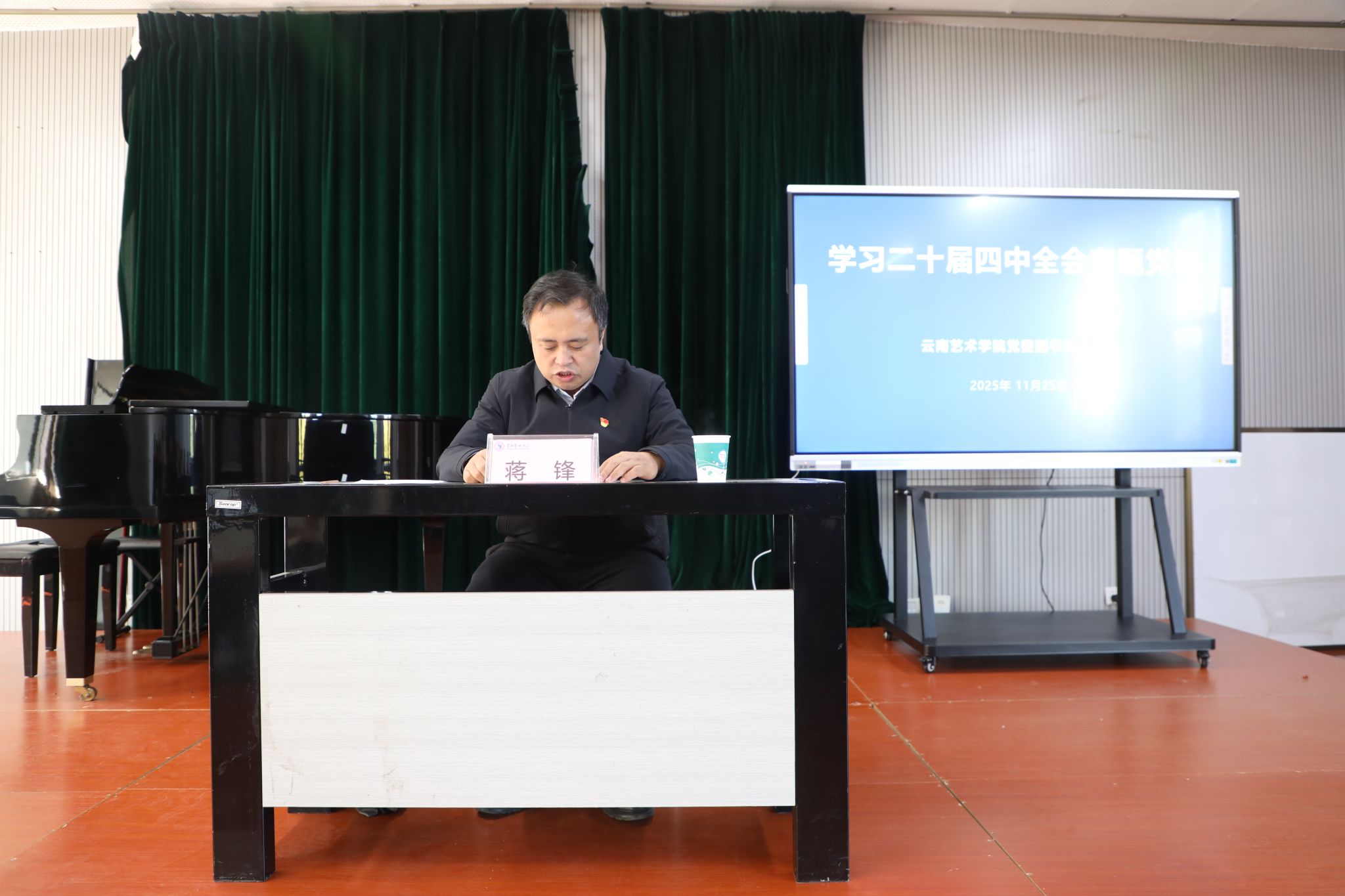 为深入学习贯彻党的二十届四中全会精神,切实把思想和行动统一到党中央决策部署上来,2025年11月25日下午,校党委副书记蒋锋到pg娱乐电子游戏官网入口讲授专题党课。pg娱乐电子游戏官网入口党政领导班子、党支部书记、师生党员代表,学校党委组织部、党校、乡村振兴办、学生工作部、武装部、职能部门党委、团委、离退休人员管理中心等部门50余名干部教师参加,pg娱乐电子游戏官网入口党委书记童汝全主持。