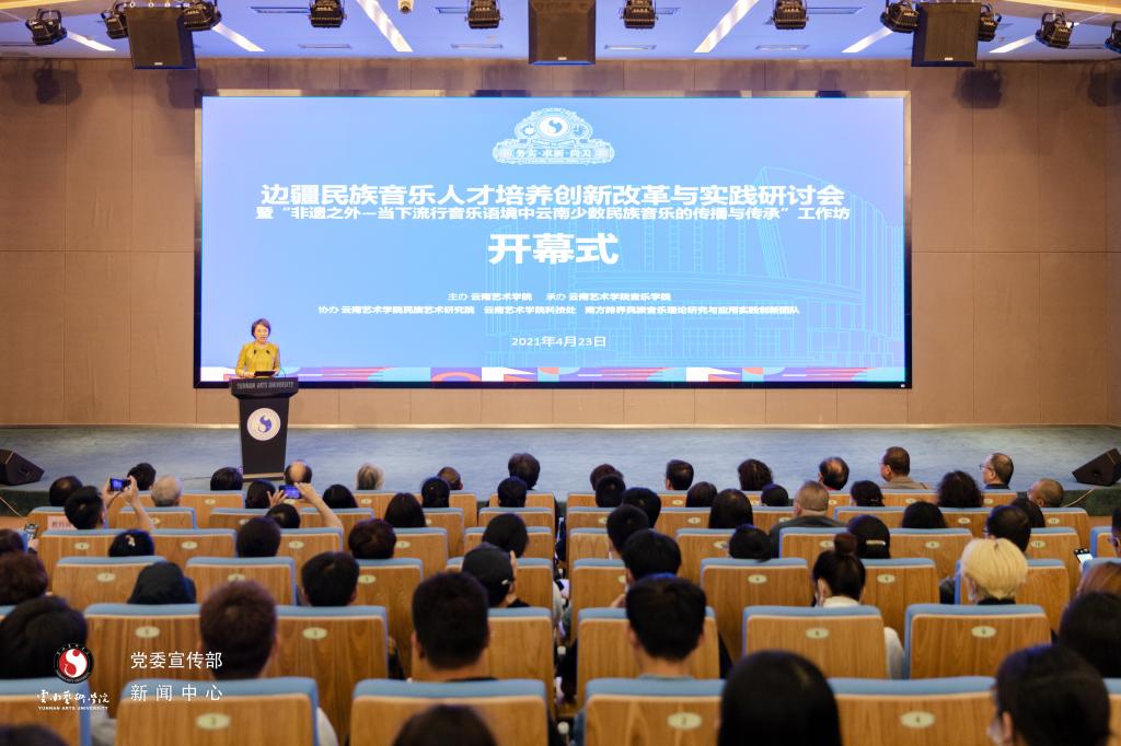 为深入学习贯彻落实习近平总书记关于教育的重要论述和全国教育大会精神,落实“立德树人”根本任务,推动高校音乐专业教学改革,创新边疆民族音乐人才培养模式,提高边疆民族音乐人才培养质量。pg娱乐电子游戏官网入口于2021年4月23日上午在图书馆举办了边疆民族音乐人才培养创新改革与实践研讨会暨“非遗之外—当下流行音乐语境中云南少数民族音乐的传播与传承”工作坊开幕式,开幕式由pg娱乐电子游戏官网入口主持工作副院长林林主持。