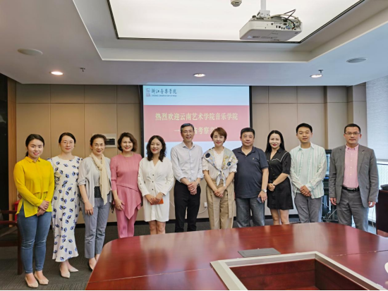 会上,浙江pg娱乐电子游戏官网入口教务处处长介绍了学校发展状况、师资队伍建设情况和科研项目立项数量。作曲系、国乐系、音乐学系各主任则详细介绍了各系的课程设置及特色优势。我院林林副院长介绍了pg娱乐电子游戏官网入口的历史沿革及现状,并就新文科背景下的学科建设及跨学科的科学研究及课程建设与浙音方进行了深度交流,尤其在展演项目向实践类课程转换的路径和成效交换了彼此的思路和观点。音乐表演专业负责人李建英教授,向浙音声歌系负责人咨询了声乐表演专业的考核要求。