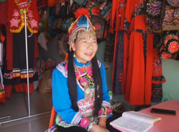7月9日,课题组将本次田野调查最后一站选定于彝族《梅葛》的发源地——姚安县马游村。初到马游村,只见村落四面环山,房屋依山而建,村中妇女皆穿着彝族倮倮颇支系传统服饰,其中一位年迈的老奶奶拄着拐杖,跨入其中一栋黄色房屋中,那便是本次课题组开展采录的地点——《梅葛》传习馆(即梅葛坊)。从7月9日至7月18日,课题组在此共对十余位民间艺人进行访谈和采录,共采集《梅葛》20余首,葫芦苼调约20调,并由郭晓炜老师协助对采录资料进行翻译和校对。