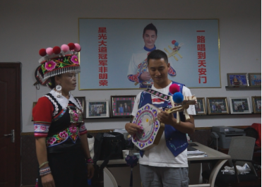 本次田野第一站选定楚雄市,对为楚雄州非遗文化做出卓越贡献的邵平先生、民间艺人非明荣进行访谈。6月30日上午10点左右,课题组抵达楚雄州民族宗教委员会拜访邵平老师。邵平老师介绍了楚雄彝族民间音乐大致情况,并为课题组接下来的行程安排提供建议和帮助。随后,课题组调研了楚雄彝族自治州文化馆、楚雄彝族自治州非遗中心。18日下午18点,课题组抵达非明荣的个人工作室,工作室的墙上贴满非明荣早年各类比赛的获奖证明以及其与诸多名人的合影留念...非老师向课题组简要概述了双柏、姚安等地具体民歌分布情况、民间艺人信息,并同其余两位民间艺人展示了楚雄彝族左脚调,以及《查姆》和《梅葛》的部分音乐。