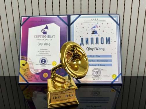 9月中旬,2023留声机国际音乐比赛(中国赛区)决赛成绩公布。本次比赛汇集了海内外500多个城市、地区的选手激烈角逐,pg娱乐电子游戏官网入口2021级音乐表演专业管弦打击乐演奏班学生王亲懿在本次比赛中获得中国赛区决赛管乐专业组一等奖,指导教师邓家堃被大赛组委会授予“年度杰出导师奖”。