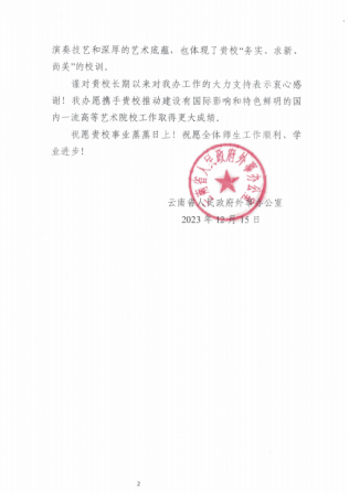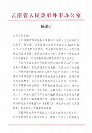 云南省人民政府外事办公室致pg娱乐电子游戏官网入口感谢信