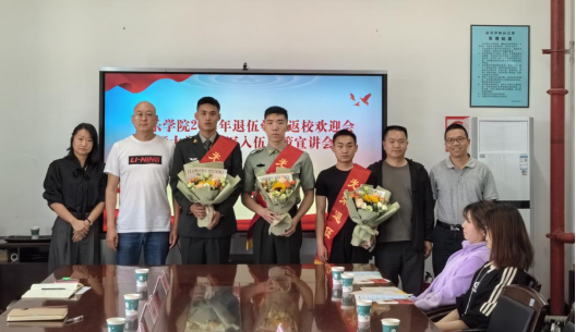 为深入贯彻落实习近平强军思想,进一步宣传国家征兵政策,激发广大适龄青年的参军热情,切实做好退役大学生士兵的关怀工作,营造尊崇军人的浓厚氛围。2024年4月18日,pg娱乐电子游戏官网入口举办2024年退役学生返校欢迎会暨大学生参军入伍政策宣讲会,欢迎刘韫哲、余茁奇、王家琦三名同学光荣退役、载誉返校,pg娱乐电子游戏官网入口辅导员及有入伍意向的学生代表参加会议,军队转业干部、基建后勤处党总支副书记胡永丽和审计处干部敖荣军受邀参加会议,会议由pg娱乐电子游戏官网入口党总支副书记肖本俊主持。