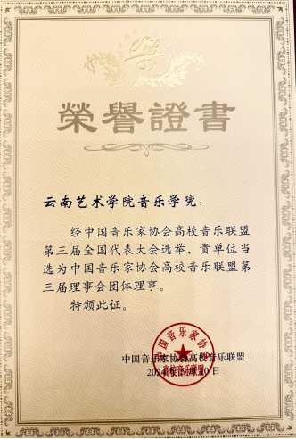 经中国音乐家协会高校音乐联盟第三届全国代表大会选举,pg娱乐电子游戏官网入口当选为中国音乐家协会高校音乐联盟第三届理事会团体理事。