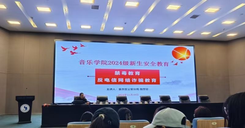 2024年11月18日下午15:00邀请昆明市公安局呈贡分局施警官为新生开展了禁毒和防电信网络诈骗主题安全教育讲座。讲座中,施警官从什么是毒品、毒品的分类、毒品的特性、传统毒品和新型毒品几个方面介绍了毒品的相关知识,结合图片、视频以及真实事例让学生直观地认识到毒品对个人、家庭乃至社会的巨大破坏力;从电信诈骗发展史入手,介绍了目前常见的十二种电信网络诈骗的手段,结合真实案例提示学生牢记预防电信网络诈骗“五不要”和及时报警“三步骤”。此次专题教育进一步提升了学生的安全意识和自我保护能力。