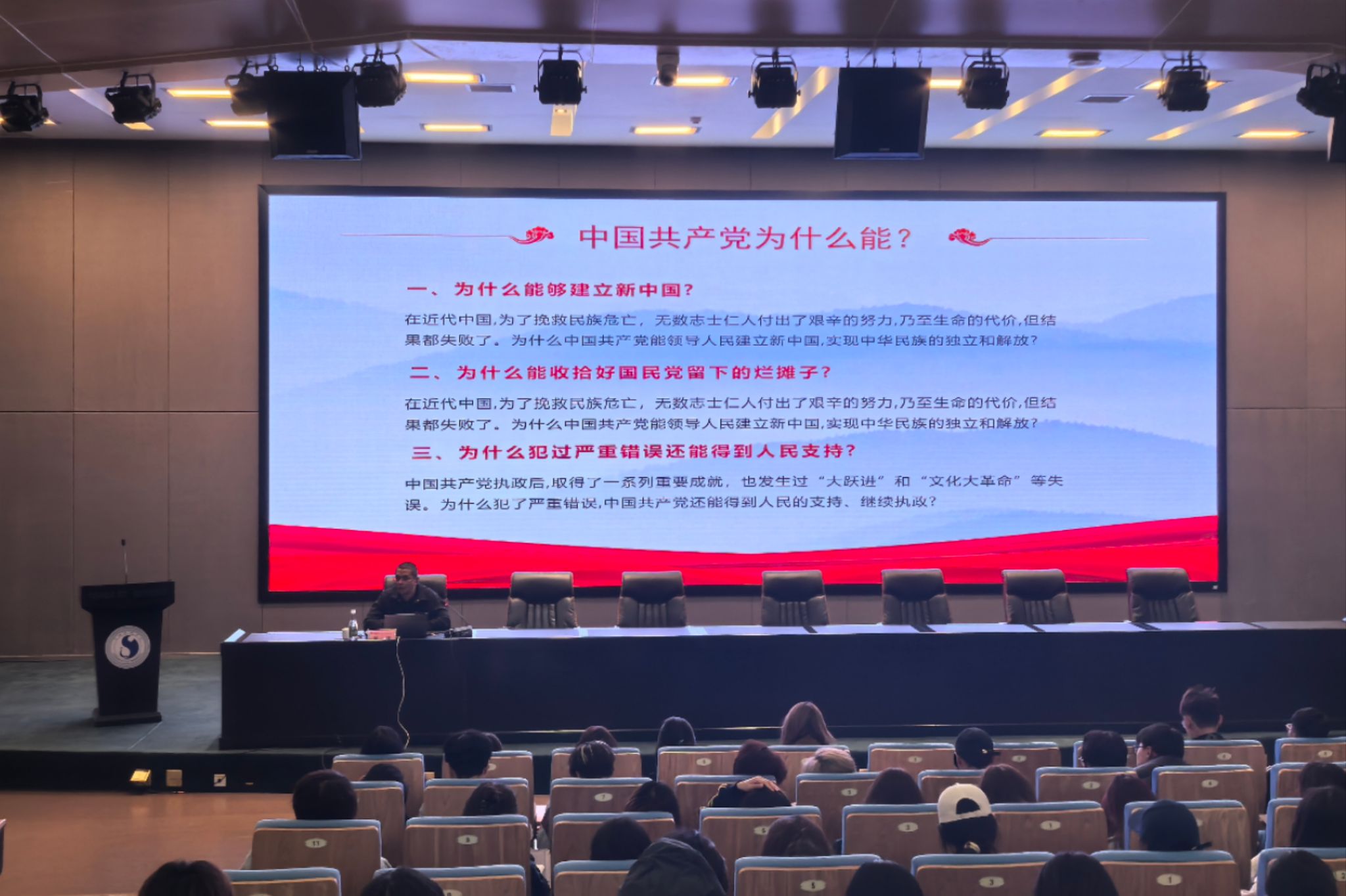 2024年11月19日19:30邀请学生处黄涛处长、pg娱乐电子游戏官网入口学生第一党支部书记李青老师、优秀党员代表吕灿志为新生开展了入党启蒙教育专题讲座,引导新生坚定理想信念,树立正确的世界观、人生观和价值观,端正入党动机。黄涛处长围绕“什么是入党启蒙?离能够入党有多远?中国共产党为什么能?”进行了深入浅出的阐释,使学生们深刻认识到中共党员应有的素养,并对新生成长成才提出殷切期望,引导新生认真学习,争做有理想、敢担当、能吃苦、肯奋斗的新时代好青年;李青老师通过鲜活的案例,详细讲解了正确的入党动机、成为党员的条件以及发展党员的流程与要求。勉励同学们做好发展规划,勤奋努力,在政治素养、学术成就和服务社会方面成为表率,争取早日加入中国共产党;吕灿志同学以“青春筑梦,奋斗当歌”为主题,分享了自己在实践中提升综合素质、端正入党动机、积极向党组织靠拢的成长经历。