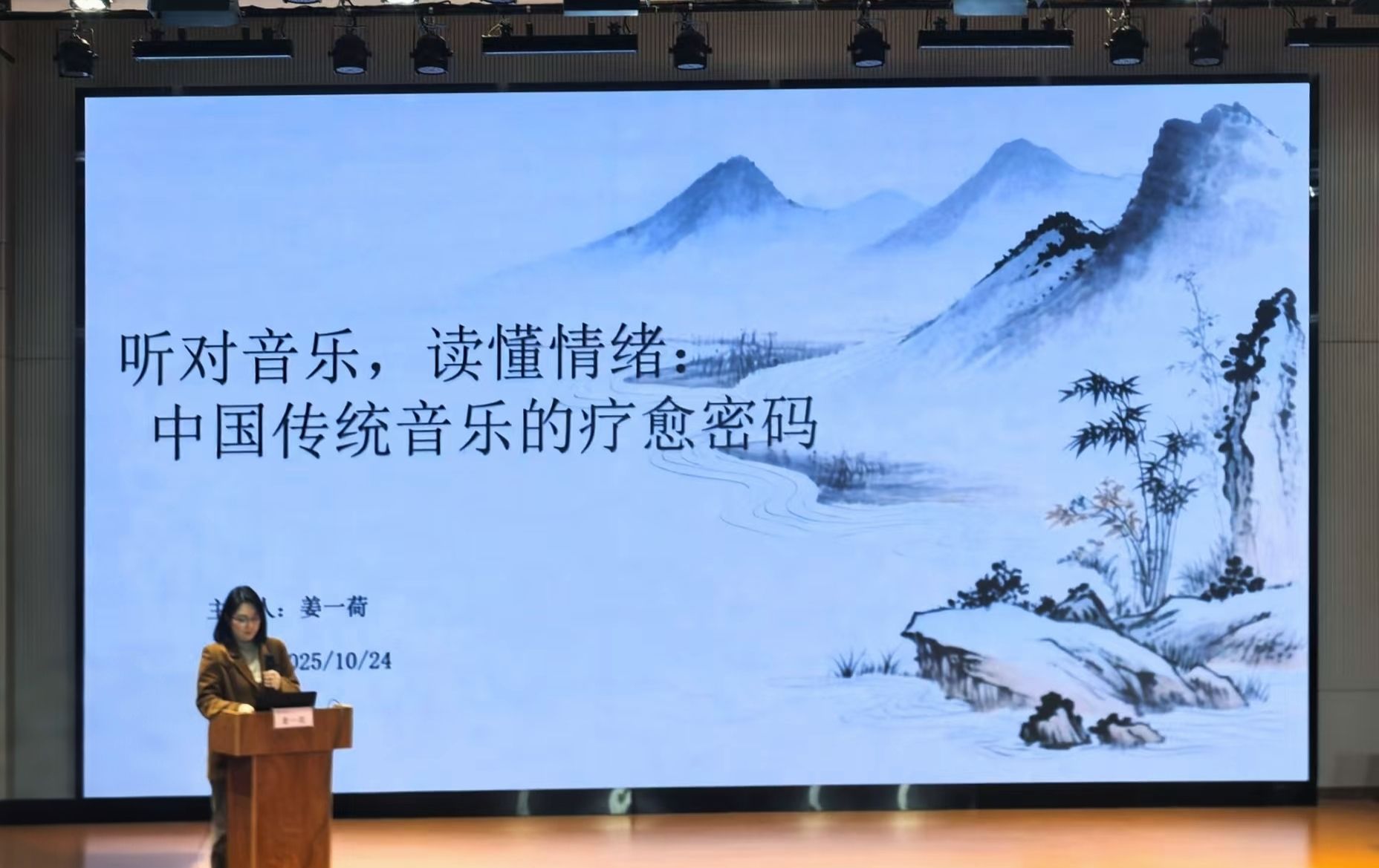 为加强pg娱乐电子游戏官网入口心理健康教育工作,推动心理育人工作提质增效,引导学生树立积极健康的心态,pg娱乐电子游戏官网入口充分发挥自身专业优势,开展“音由心生,乐享心晴”心理健康教育系列活动。第一期活动“听对音乐,读懂情绪:中国传统音乐的疗愈密码”专题讲座于2025年10月24日在pg娱乐电子游戏官网入口B403举办。讲座由姜一荷博士主讲,杨晶老师主持,pg娱乐电子游戏官网入口100余名师生参加。