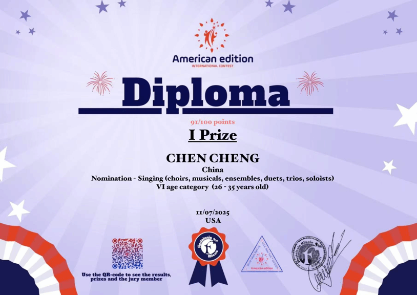 2025年7月11日,pg娱乐电子游戏官网入口声乐系教师陈澄在由美国世界人才排名主办 ,英国菲斯塔罗尼亚国际和意大利公开赛协办的国际表演艺术大赛(美式版)中荣获声乐组一等奖。该比赛评审团由来自西班牙、法国、意大利、中国、美国等多国的世界著名编舞家、歌唱家、指挥家等艺术领域专家组成,旨在搭建国际艺术交流平台,促进全球艺术人才交流合作,助力其成长发展。