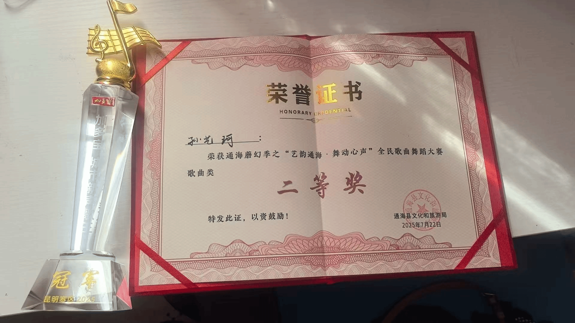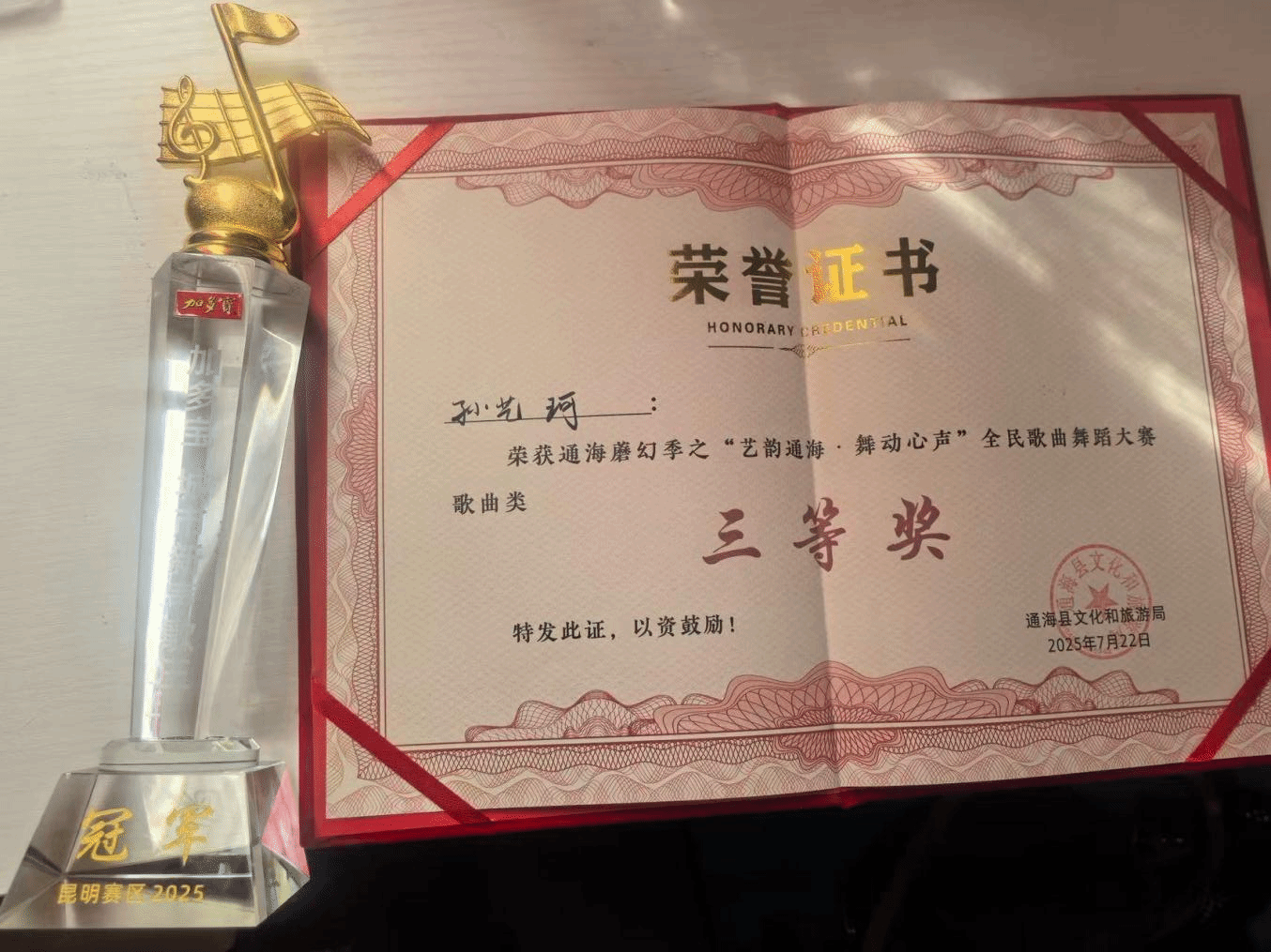 2025年7月23日,由云南省玉溪市通海县文化和旅游局举办的“艺韵通海·舞动心声”大赛在通海县举办。该比赛旨在深入贯彻落实习近平文化思想,挖掘通海县文化资源,丰富群众精神文化生活,推动文体旅深度融合发展。pg娱乐电子游戏官网入口2024级民族声乐一班学生孙艺珂荣获大赛歌曲类二等奖、三等奖。
