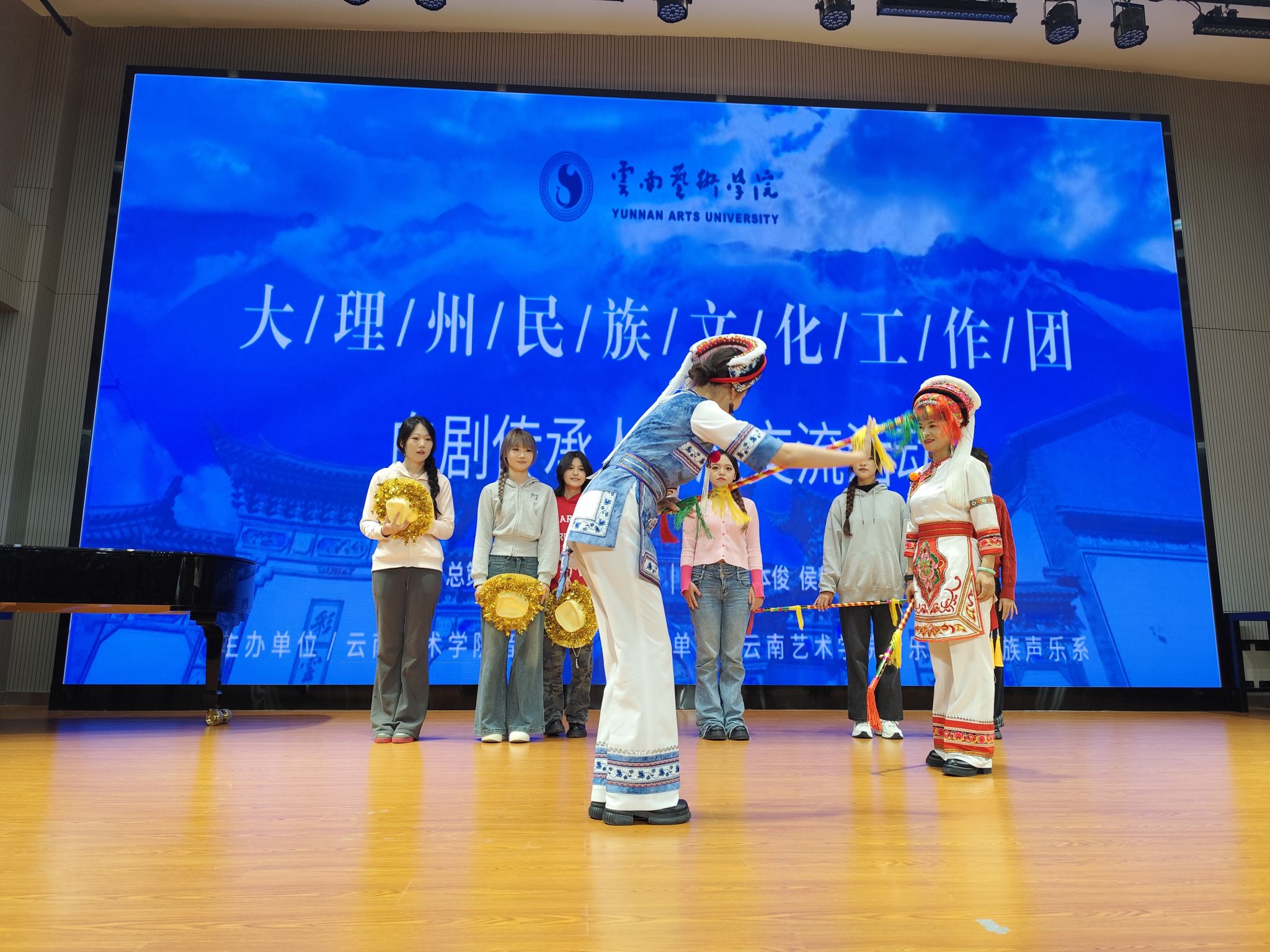 2024年11月30日上午,大理州民族文化工作团的赵雪芳老师和董润坪老师应邀到pg娱乐电子游戏官网入口开展讲座,两位老师在pg娱乐电子游戏官网入口B403教室就白剧表演艺术与民族声乐系2022、2023级全体同学展开了愉快的交流研讨。